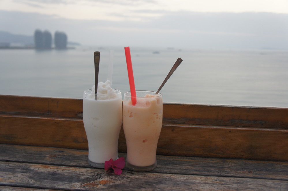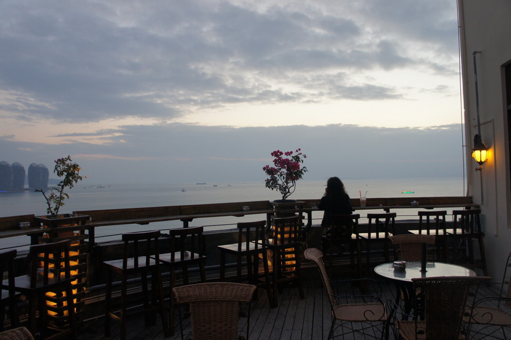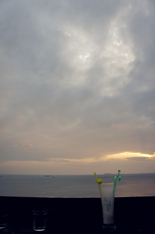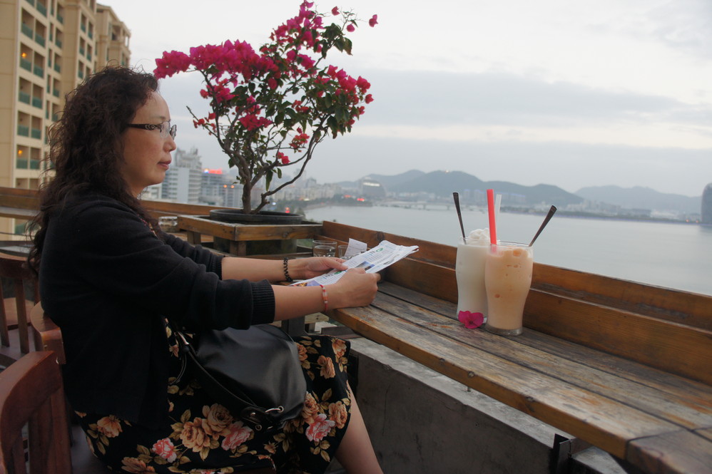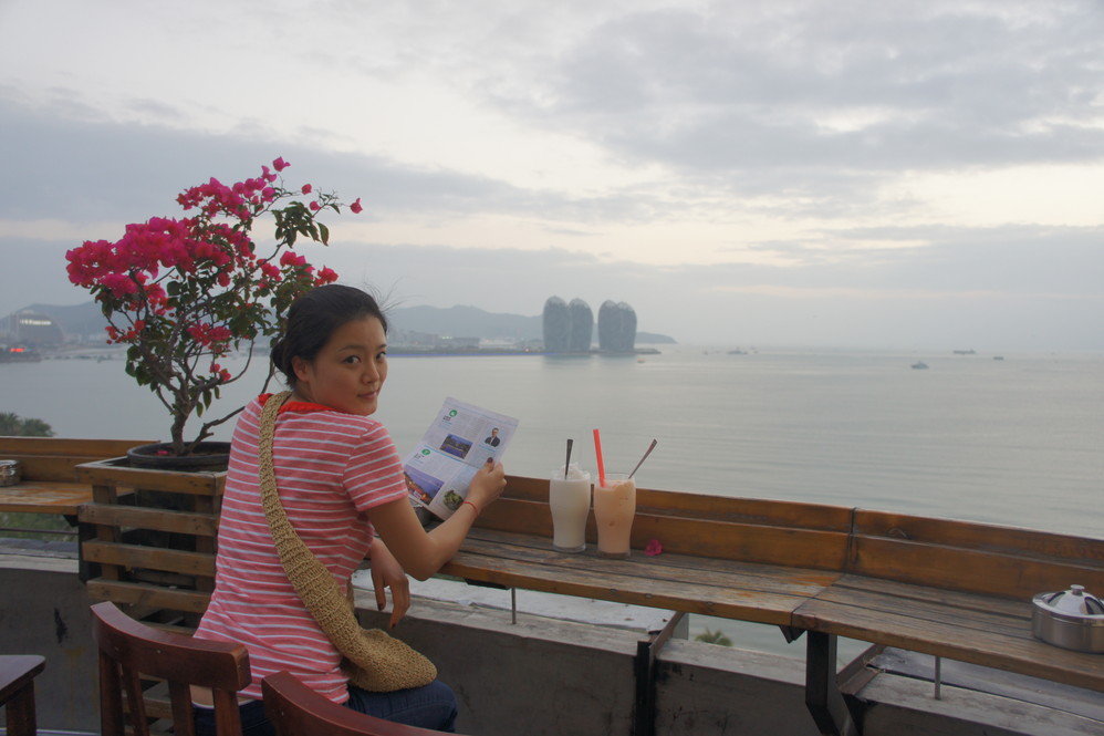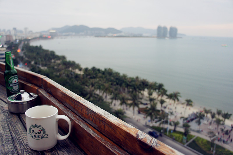 从弟弟杂志上看到推荐滴三亚 必去之地,有点小资,有点文艺,有点舒适,下午5点过就去占个天台 滴好位置,点上一杯香草奶昔(30rmb,超级好喝,很浓厚),就可以看日落了,有点海风吹着,感觉倍儿舒服啊