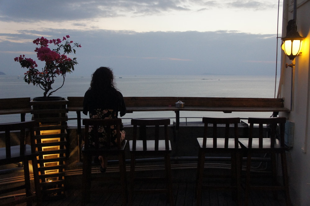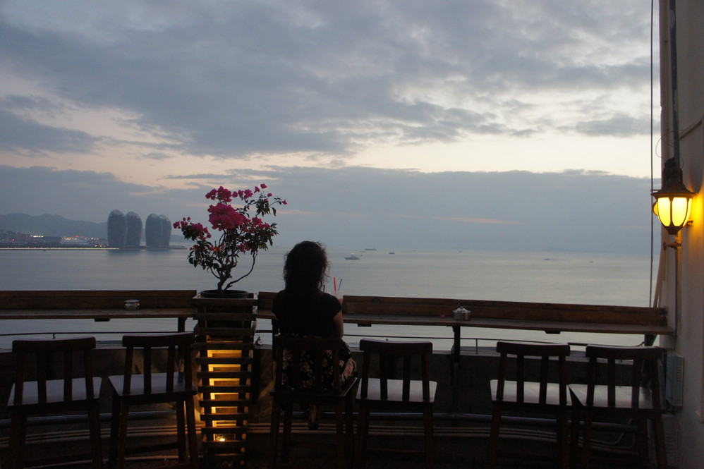 第二个地方,草苗咖啡店看三亚 湾日落。