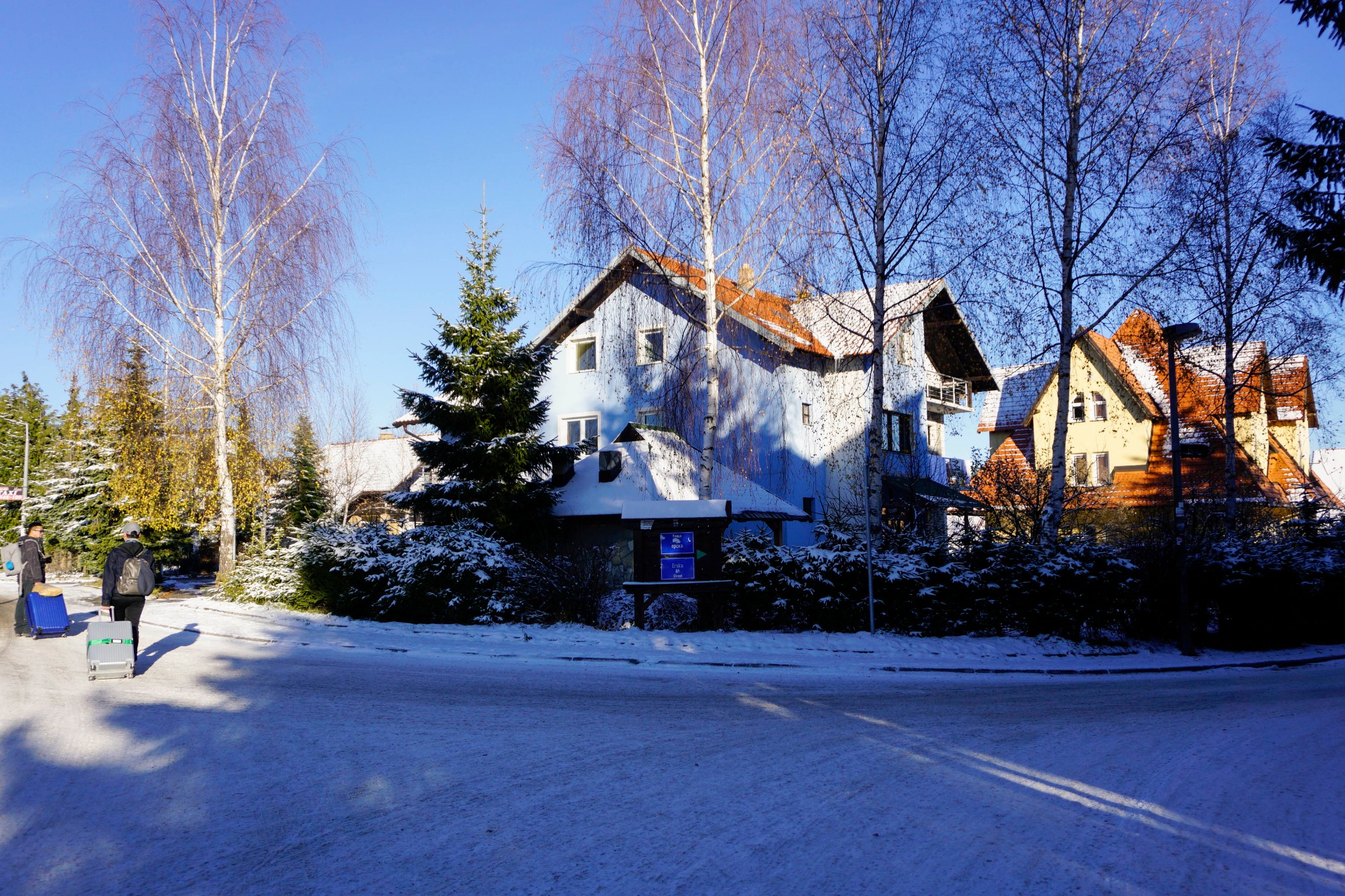 托着箱子在雪地上一路走,和房东约好了两点钟取钥匙,时间也差不多到了,依然忍不住走走停停拍拍,我的理智已被美景蒙蔽。