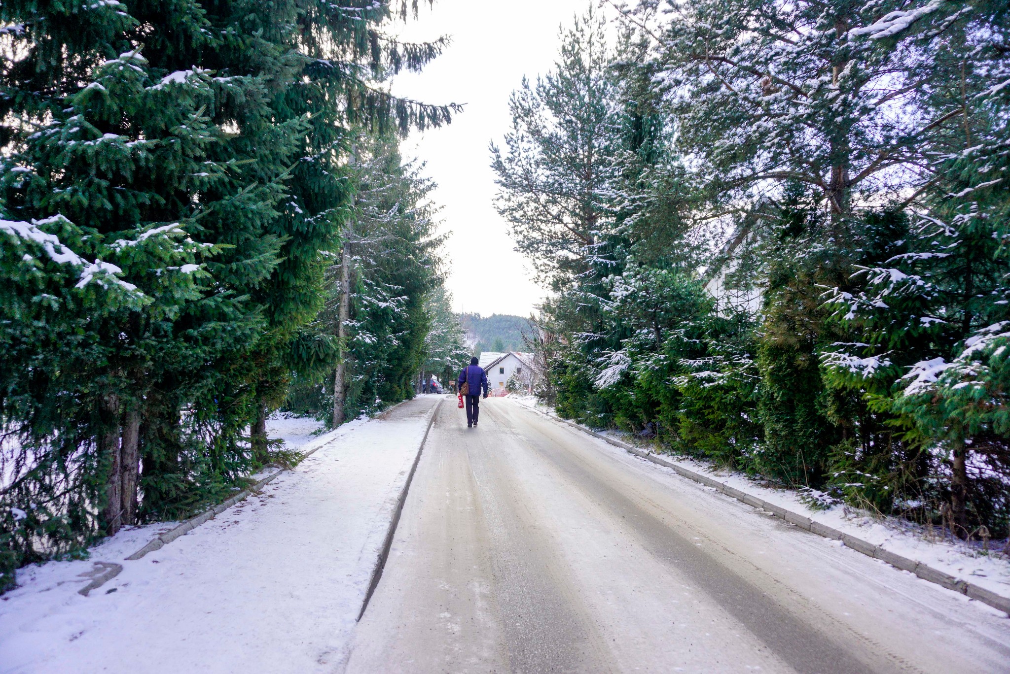 看到我发的图片,大家应该能明白为什么我把它称为圣诞小镇了吧?三角形的圣诞常青树包围了整个镇子,在雪的覆盖下它显得格外精神,真好奇圣诞节那几天它们会不会被特别打扮呢?