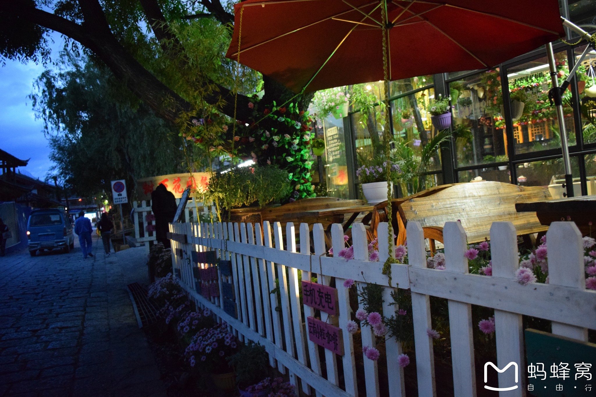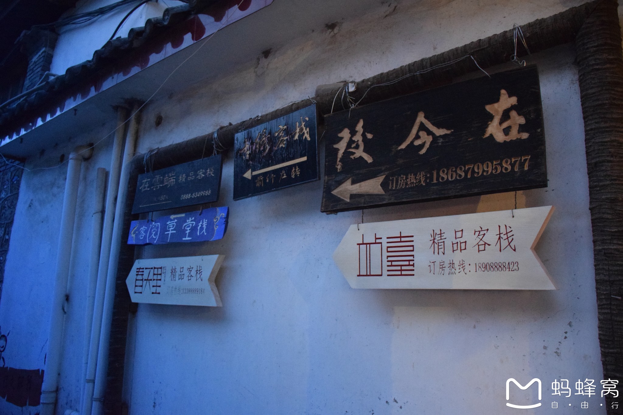 拍人烟稀少的路或者跑到人家客栈门口拍一下。