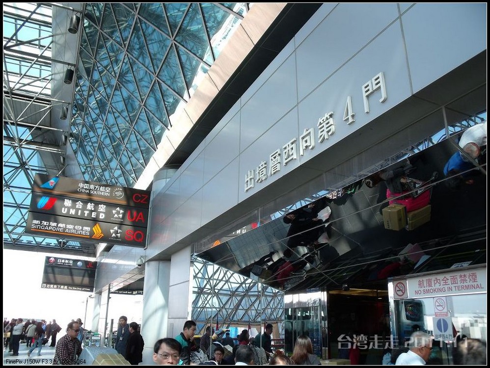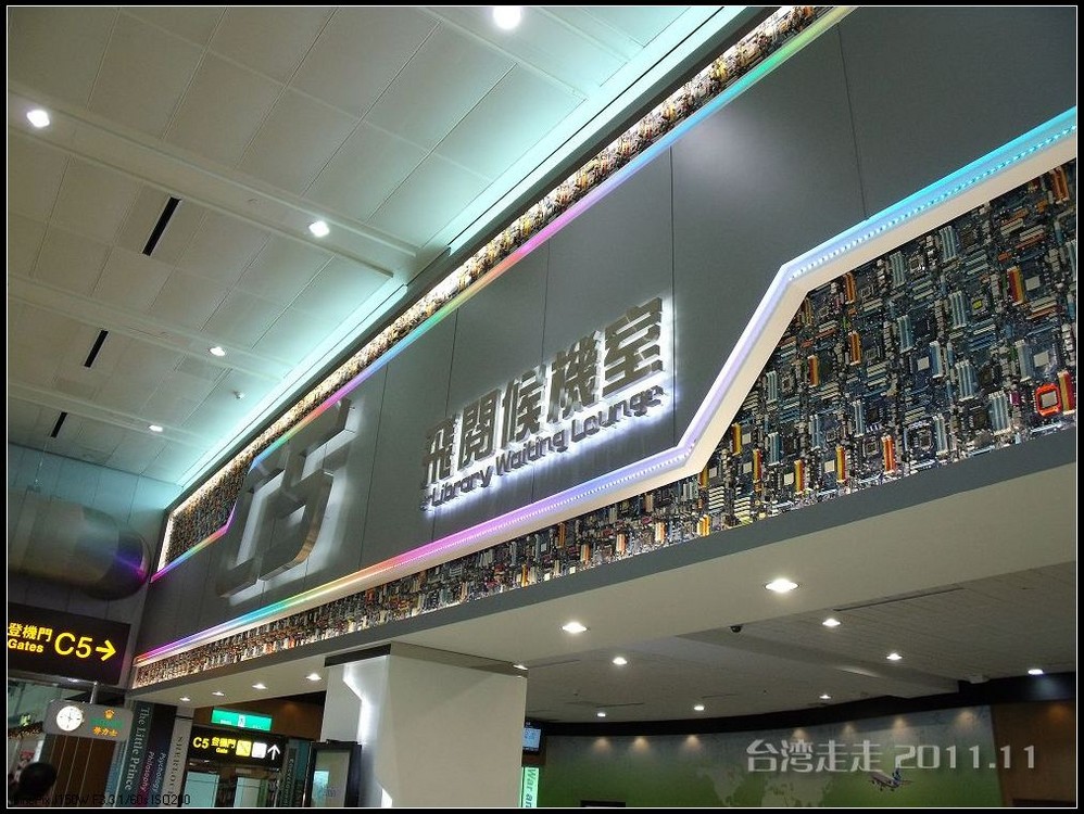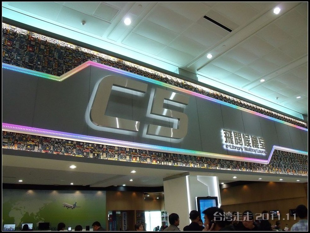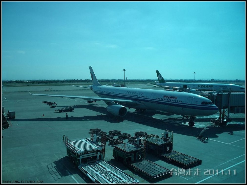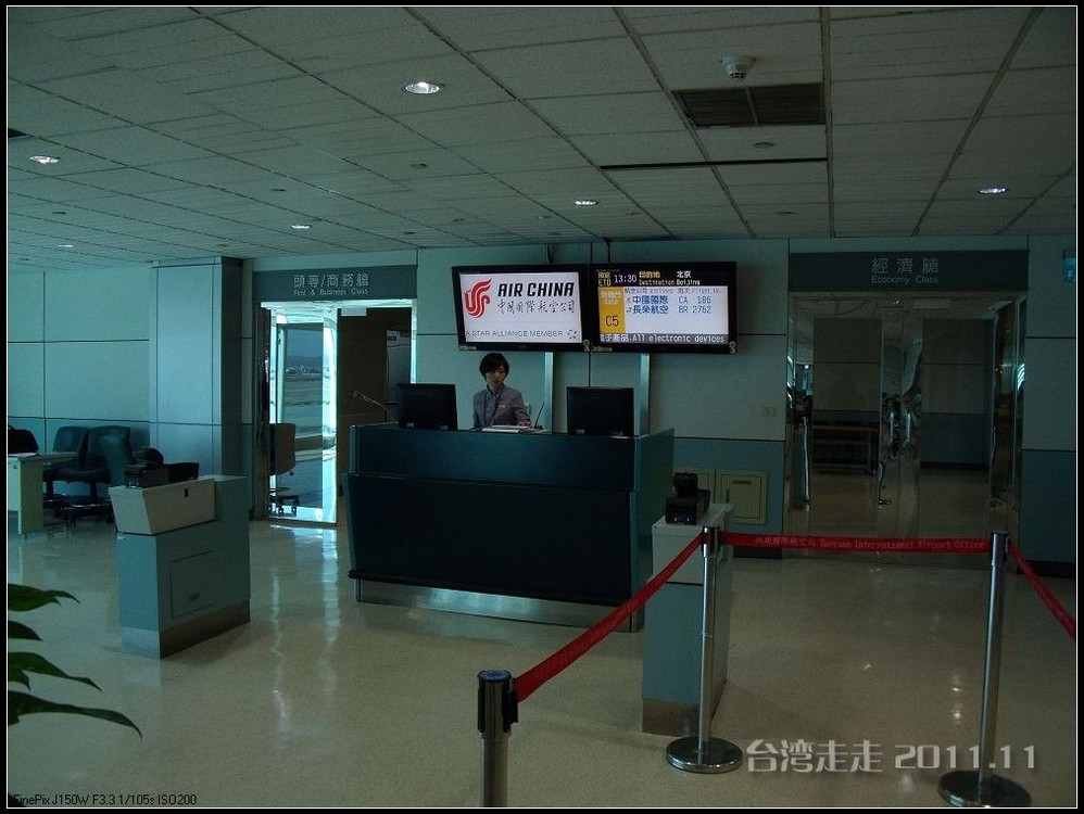 当从大巴车窗看到外面的金属感的大楼,我们就到达了桃园机场 。拿登机牌的事全是阙导去办的,我们就是拿到自己的后去托运行李。真是旅行社全安排好的,固定的行程吧,返程的飞机坐位跟来的时候完全一样,也是53排的E、F、H。