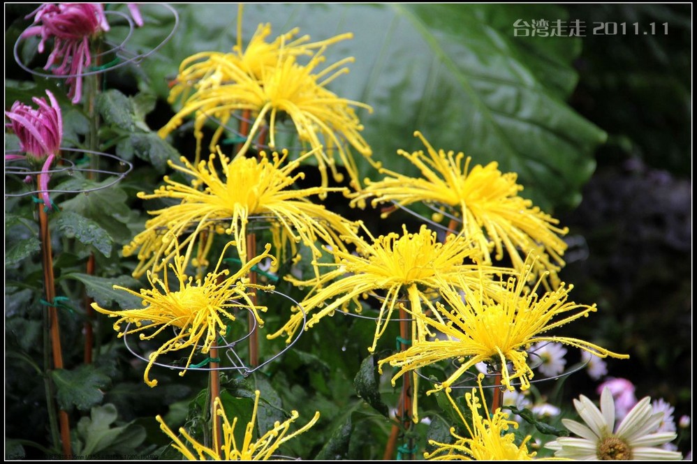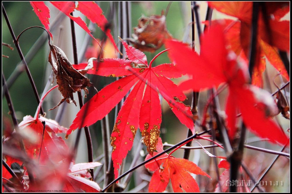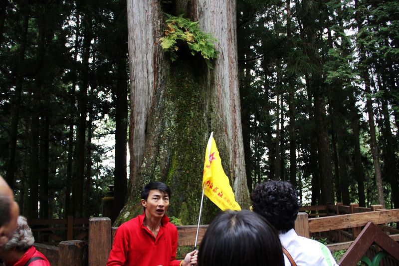 准备下山的时候,还是到受镇宫边的广场排队等车,这回排队的时间比上来的时候还长。也是8人一车坐到山下。阙导上下都是不坐坐位,猫着腰挤在我们车里的空隙中的,全凭他够瘦,哈哈。我还有幸帮领队举了回中旅的小黄旗呢,召集着我们队伍的叔叔阿姨们集合,挺威风的。虽然台湾 的平地上还很热,山上还是比较冷的,居然还看到了红叶。在北京 都没去香山凑热闹,跑到台湾 的大山上却看到了。