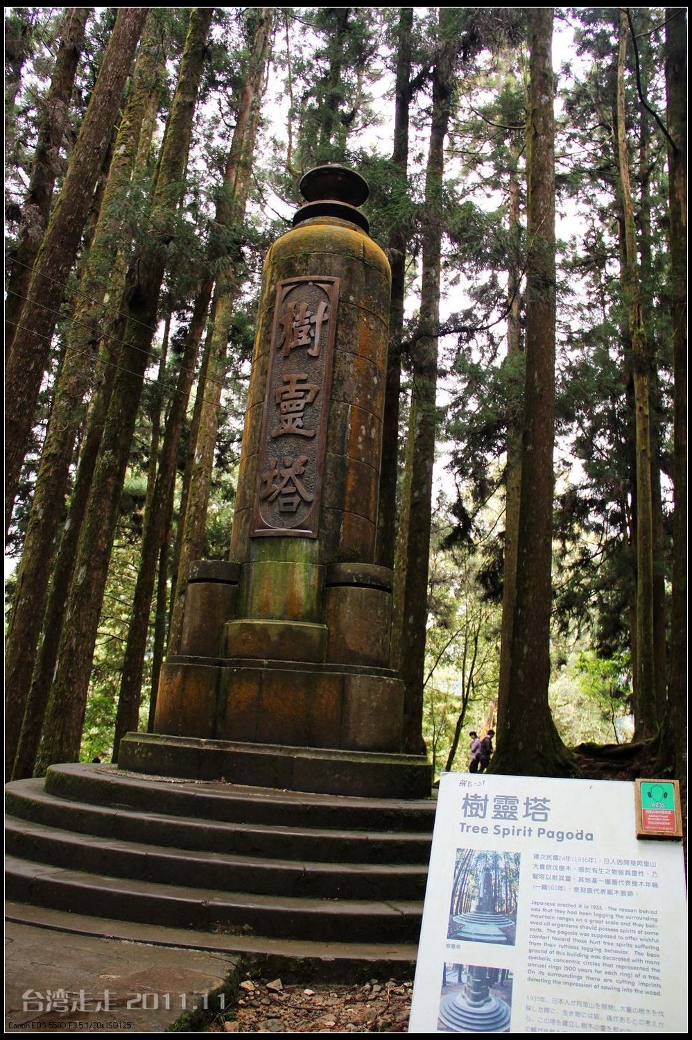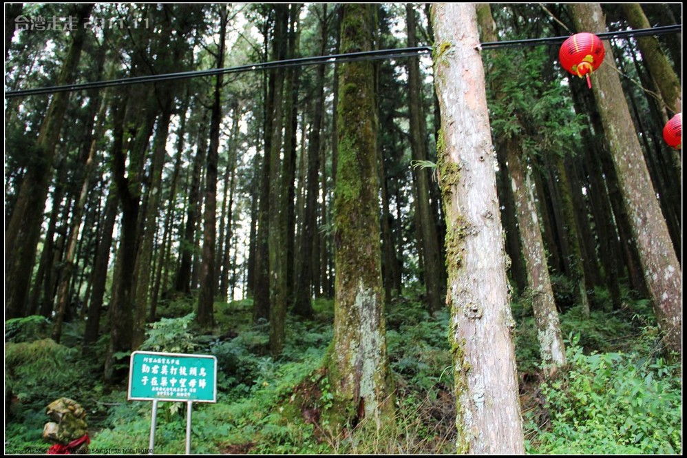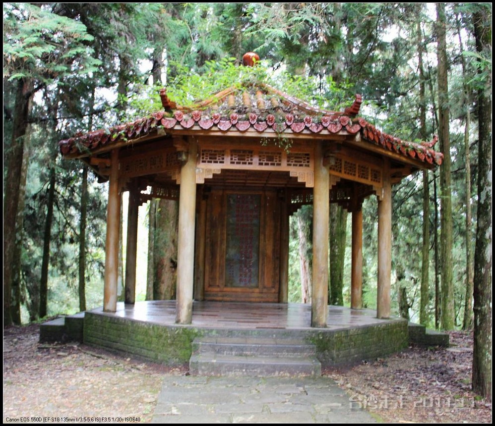 千岁 桧旁有座博爱亭,内有国父颂的诗文,旁边则是第一巨木群的起点。