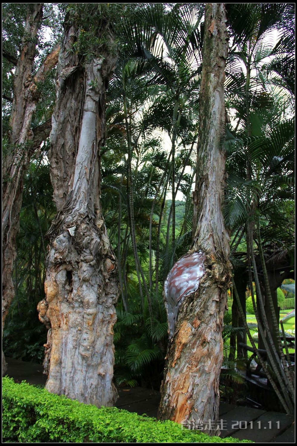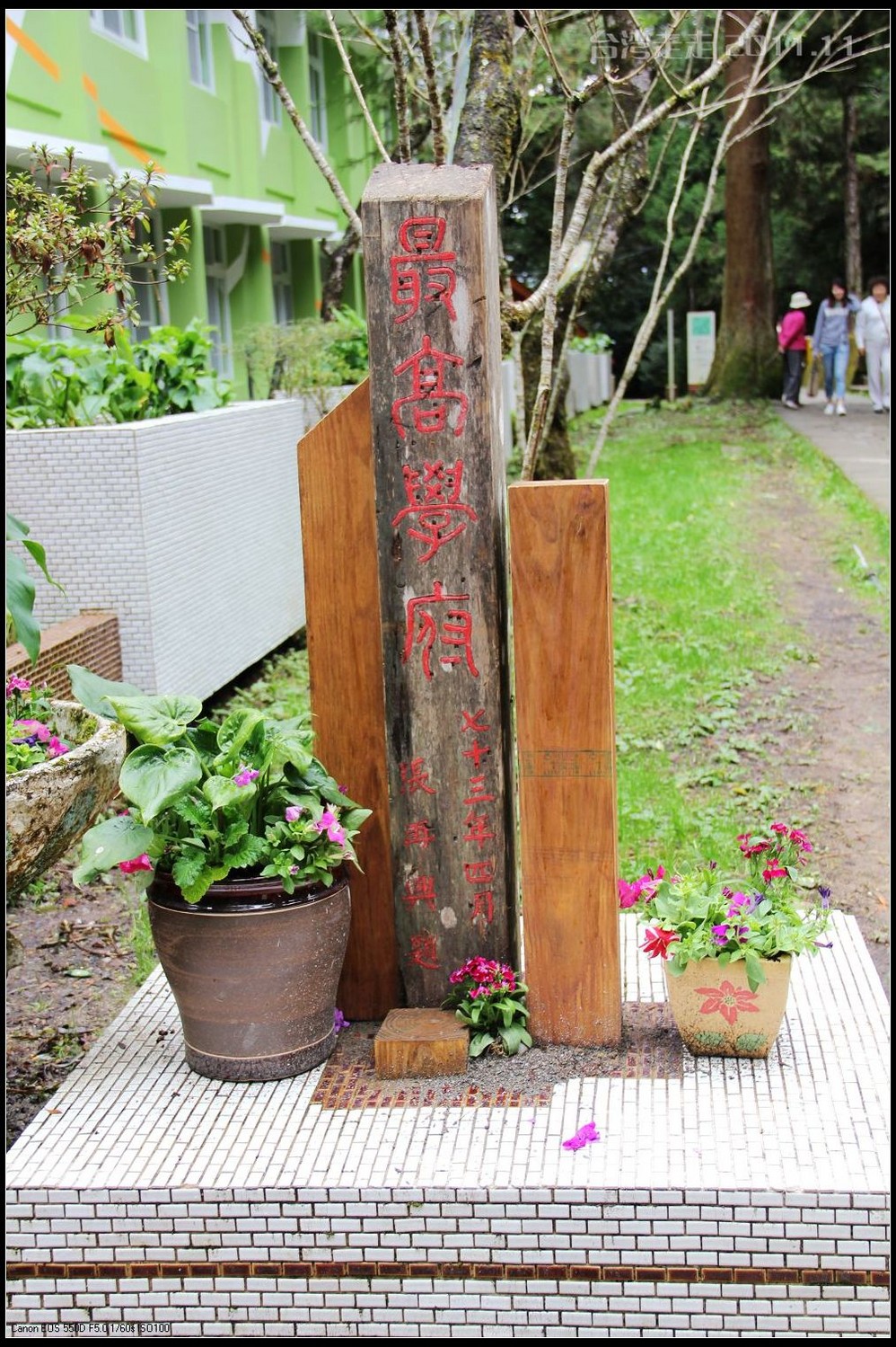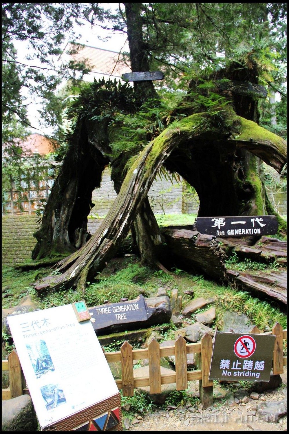 千岁 桧旁有座博爱亭,内有国父颂的诗文,旁边则是第一巨木群的起点。