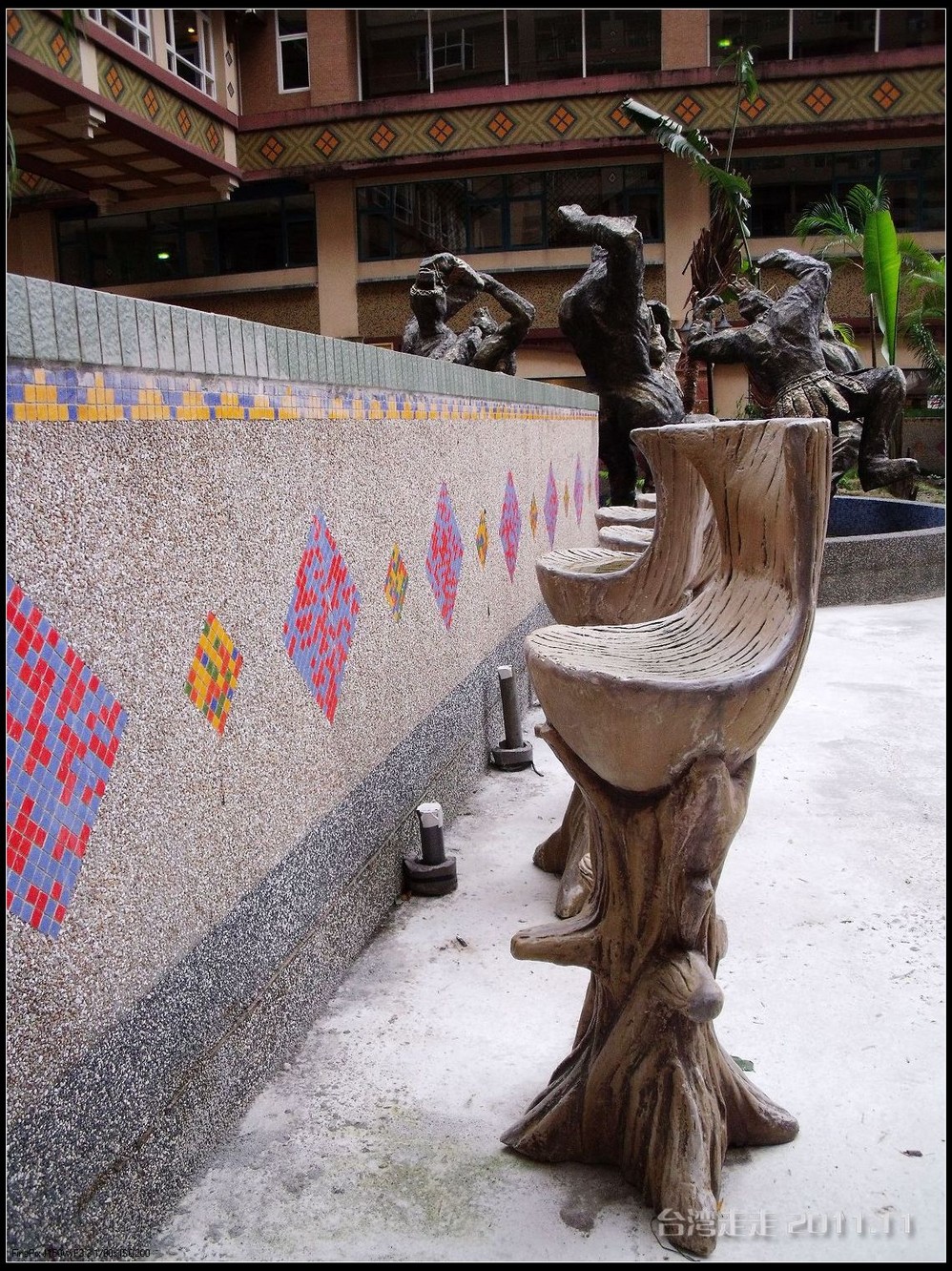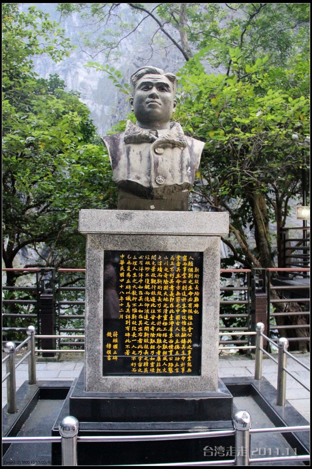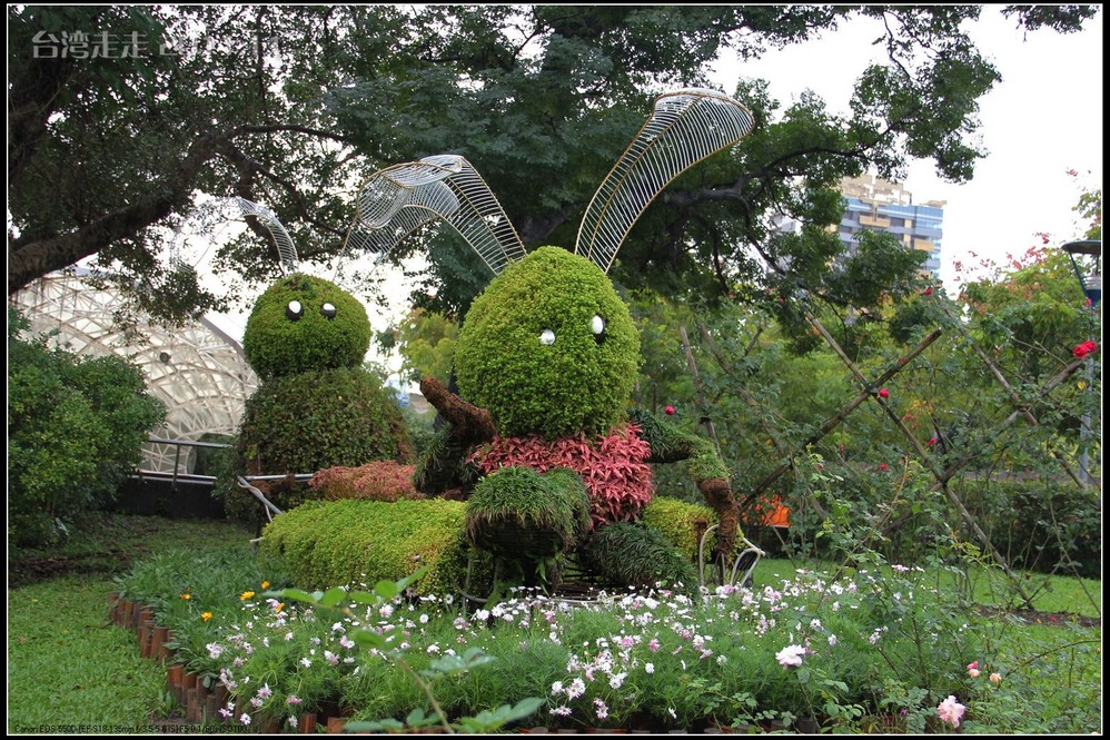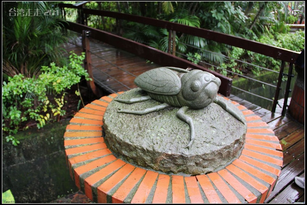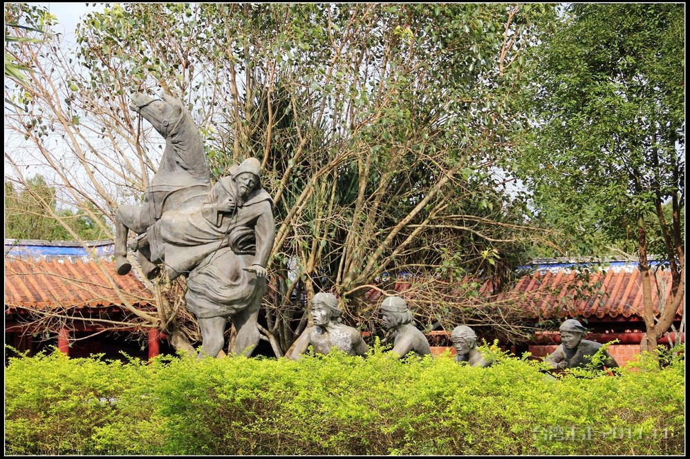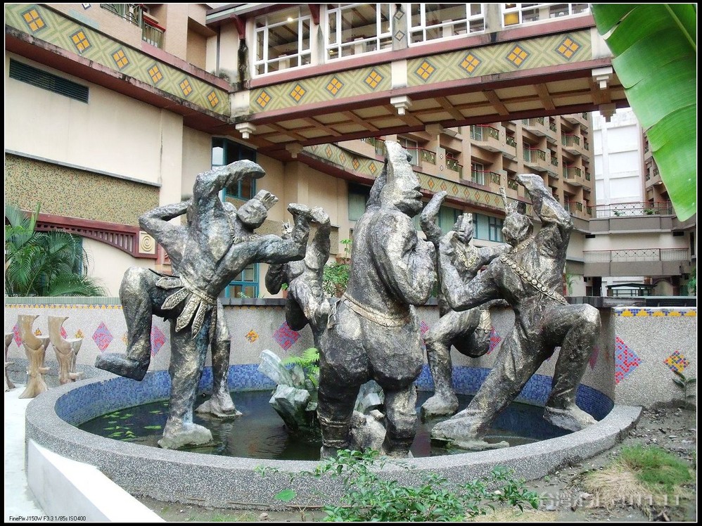 在园区里,走过“慈康桥”,有很多老蒋的雕像,听说是陈水扁上台后,把各处摆放的“老蒋”全搬到这里来了,足有一百五十多件。有老蒋不同年龄、不同装束的,有站着的、坐着的,还有略带罗锅柱着拐棍的呢。集中一次能看到这么多的“老蒋”,也挺有意思。其中也有个别两、三座是孙中山 的雕像。