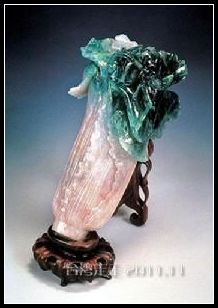 这回是真见识了,我一直以为得多大呢,原来“翠玉白菜”只有18cm大,小小的一颗到真精致,菜叶上停留着两只昆虫,它们可是寓意多子多孙的螽斯和蝗虫。白菜寓意百财。