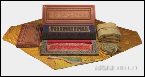 这次我们有幸赶在民国一百年的时候来参观,还是看到了难得一见的宝物。有耗资黄金五千两打造的藏文《龙藏经》,“藏文龙藏经”康熙八年(西元一六九九年)于紫禁城制作完成。清初,为了统治人口多满族两百倍的汉族,急需笼络同是少数民族的蒙族与藏族,而这两族都信奉藏传佛教。康熙 皇帝遂在祖母博尔 济吉特氏(即大玉儿)鼓励下,下旨拨款、以泥金将年久破损的明代藏传佛教经典“甘珠尔 ”,以藏文重新抄写一遍,祈求佛恩广布、国泰民安,并赐名“龙藏经”。共收录一千一百种藏传佛教经典,分成一百零八函(册),象征治疗众生的一百零八种烦恼。而每一函平均有五百多页,加上两层书盖,重达五十公斤。 “藏文龙藏经”是金粉加上胶和成泥状,书写于深蓝色的磁青纸上,并在侧面画上藏传佛教八宝 图。书写经文,如以一位精擅藏文书法的喇嘛每天抄写四页经文的速度来算,要抄完全部经书十万页,共需七十年的时间。“藏文龙藏经”藏于慈宁宫 佛堂多年,逢特别节日,由宫中高级喇嘛开书诵念,历时三百年。对佛教徒来说,加持法力惊人。据说有缘亲睹全套书的人,将可获七世平安。