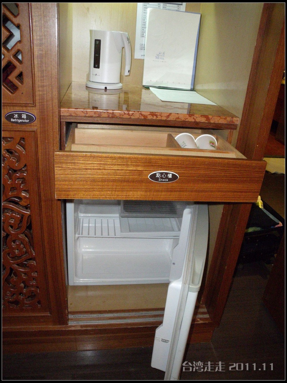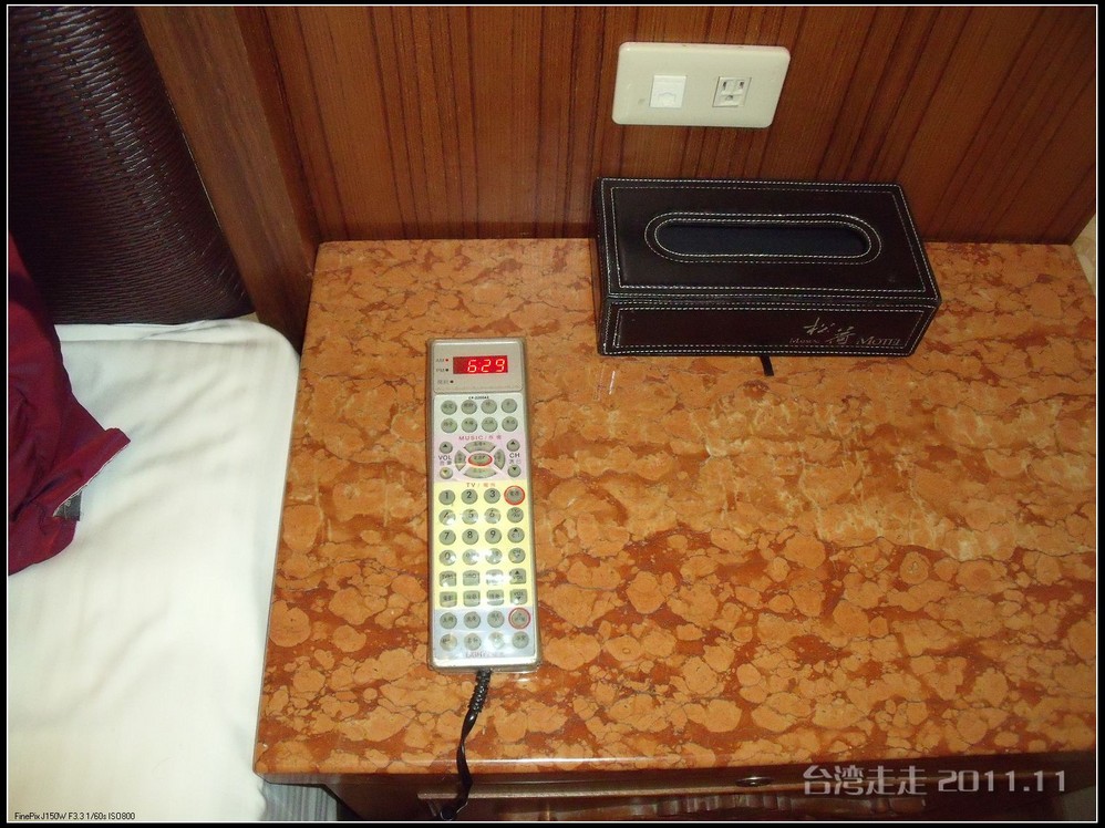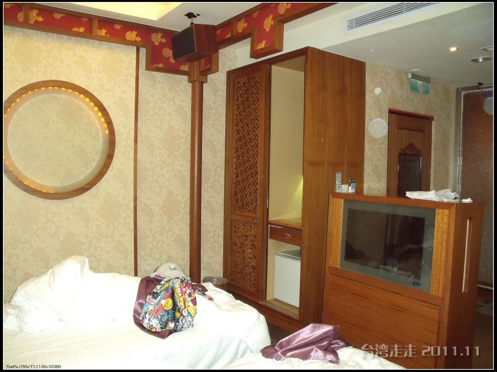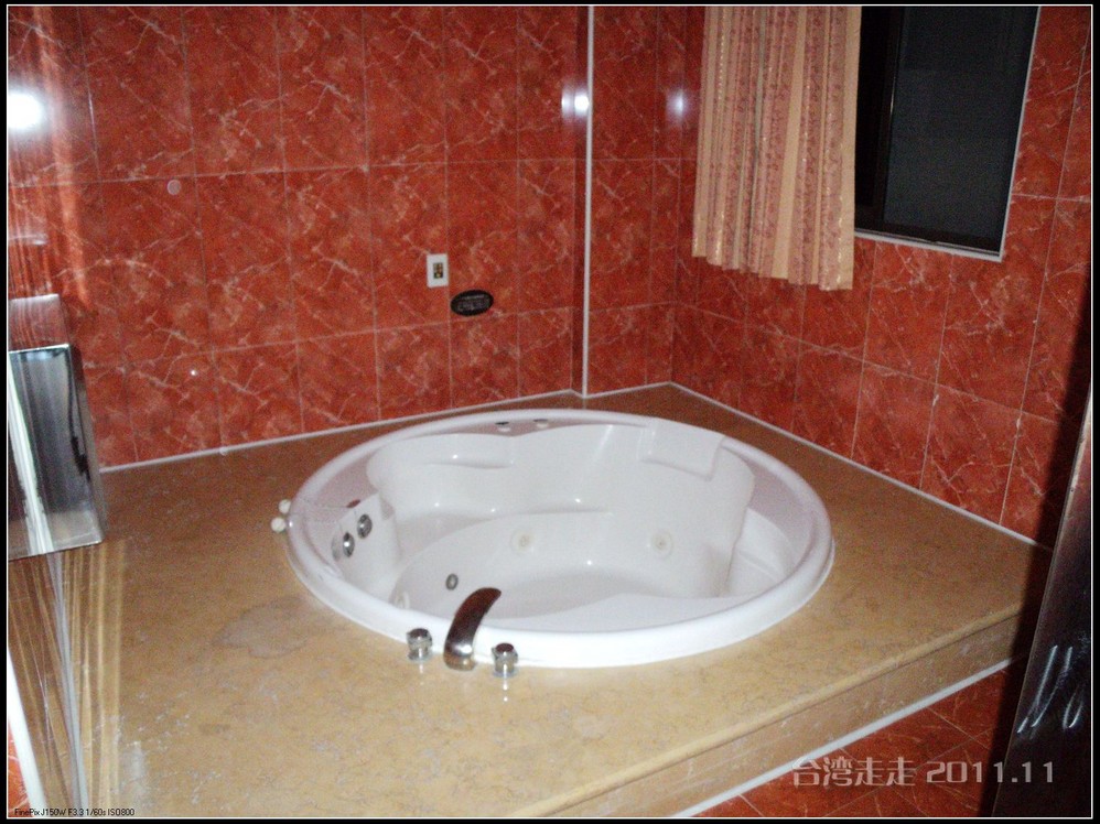 半小时路程后,我们来到了桃园 了MOTEL汽车旅馆----松荷 。它坐落于桃园 县中坜 市。我原本印象里认为汽车旅馆都是高速边为过路的人晚上睡个觉用的,不会太好的。不过听阙导介绍说:我们今天住的汽车旅馆,每个房间都会不一样,各有各的主题,例如夏威夷式、科幻式等等,很有情调噢。有的还有双人按摩大浴缸。在台湾,汽车旅馆有时候是“情人旅馆”的代名词。在台湾 ,许多高速公路沿线地区、新开发的重划市镇或风景区 附近,分布有较多的汽车旅馆。由于竞争激烈,使得汽车旅馆的经营走向休闲的方式,装潢设计达到或甚至超越高级饭店 的水准。房间里的东西都是免费的,连冰箱里的也是,能看到什么尽管统统拿走。