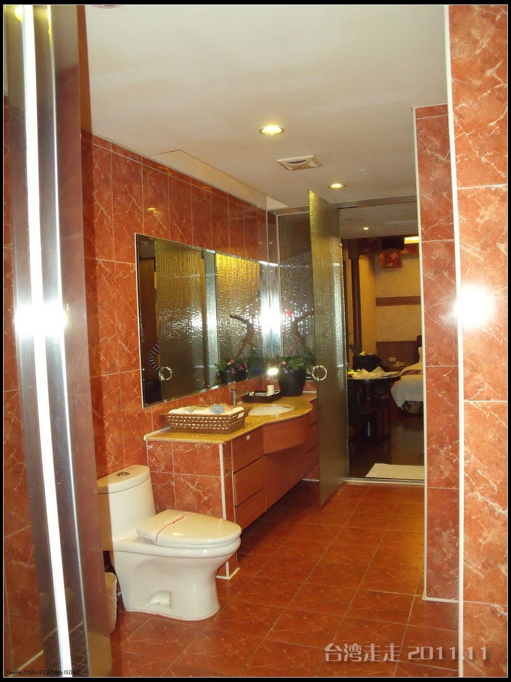 因为有两家是三个人的,我是和另外一位姐姐一屋。由于房间里真的很大,今天她们三人就睡一屋了,我把老妈叫上跟我一屋睡去。当我拿着门卡来到我们的房间时,更是让我惊喜。他们住的是普通酒店那样的楼里,我这个居然是一层车库二层住人的“别墅楼”,真是太牛了。一进门我就先把车库的卷帘门给落下去了,独门独户的真不错。在北京 都没住复式结构的房子呢,哈哈。卫生间里更大了,有个双人按摩大浴缸,可惜没人跟我一起泡(改天应该找个男人再去一回,嘿嘿),沐浴跟桑拿还是分开的两个地方,连沐浴球和发夹都有,还有卸妆乳、洗面奶呢。靠!出过这么多回门,这是我住过的条件最好的一个了。