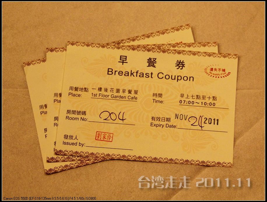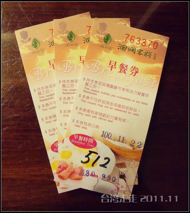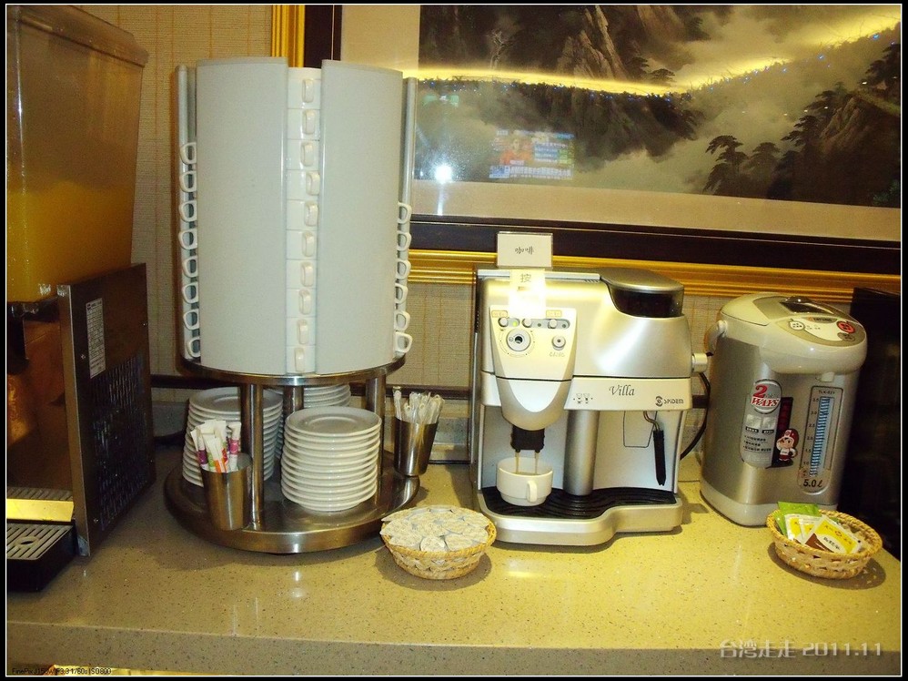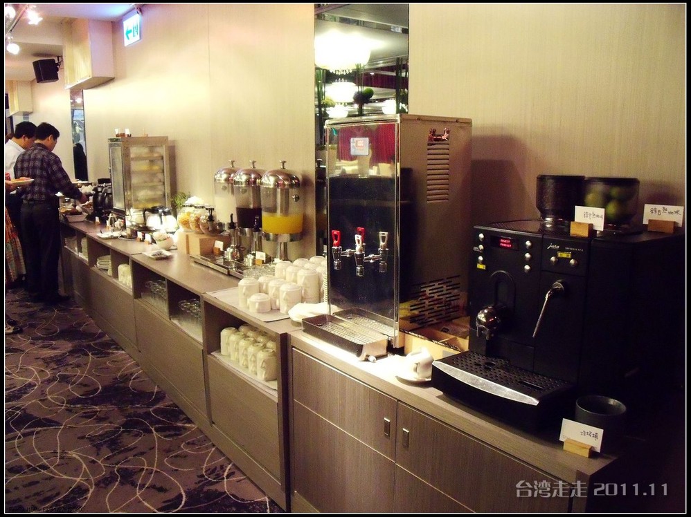 第二天一早起来,就要收拾好行李带着走了,因为今天开始继续往南走,每天换一家酒店的住到再回台北。七点半叫早,八点半出发的时间也不是很紧张,我们向来都是六点多就起了。然后去早餐厅吃得饱饱的。早餐都是自助式的。这里的餐厅地方不大,品种也不多,到是干净整洁。我们每天早上都来一杯现煮的咖啡,不错。