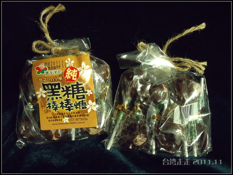 从桃园 到南投的路程还是比较远的,途中在一个休憩站让大家下车“唱歌”(这里的唱歌就是上厕所啦)。解决完急事,还顺便看看卖东西的小贩。有卖素手浣花黑糖棒棒糖的,过来的人每人先发一只,先尝后买,买三包送一包,买五包送二包。这棒糖还真与以前吃过的不同,在甜甜的棒棒糖里面夹着一颗话梅,在吃起来酸酸甜甜的,很是好吃。于是我们就来了个买五送二的,NT400元七包,合RMB1.2一根。 在去方便的时候我还发现二层上有青天白日旗,赶紧拉着老妈上楼去照了一张,当然还要把我带去的国旗拿出来照在一起。可惜回来后在电脑上看才发现被老妈照虚了。