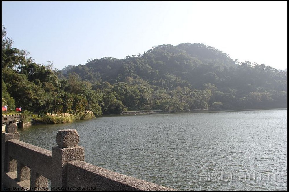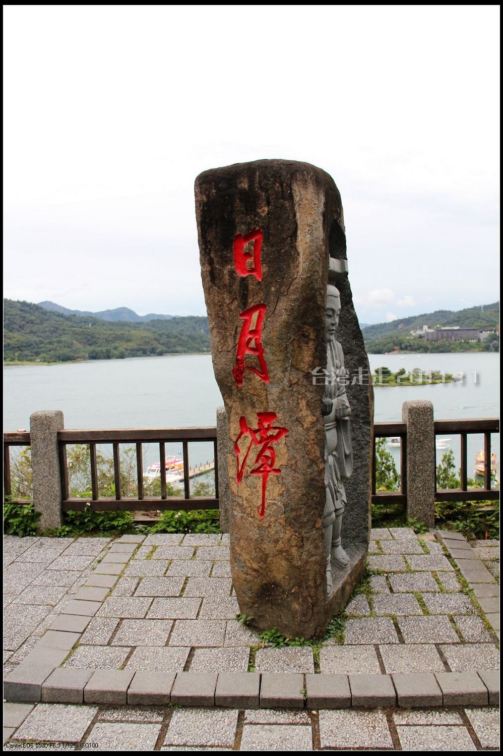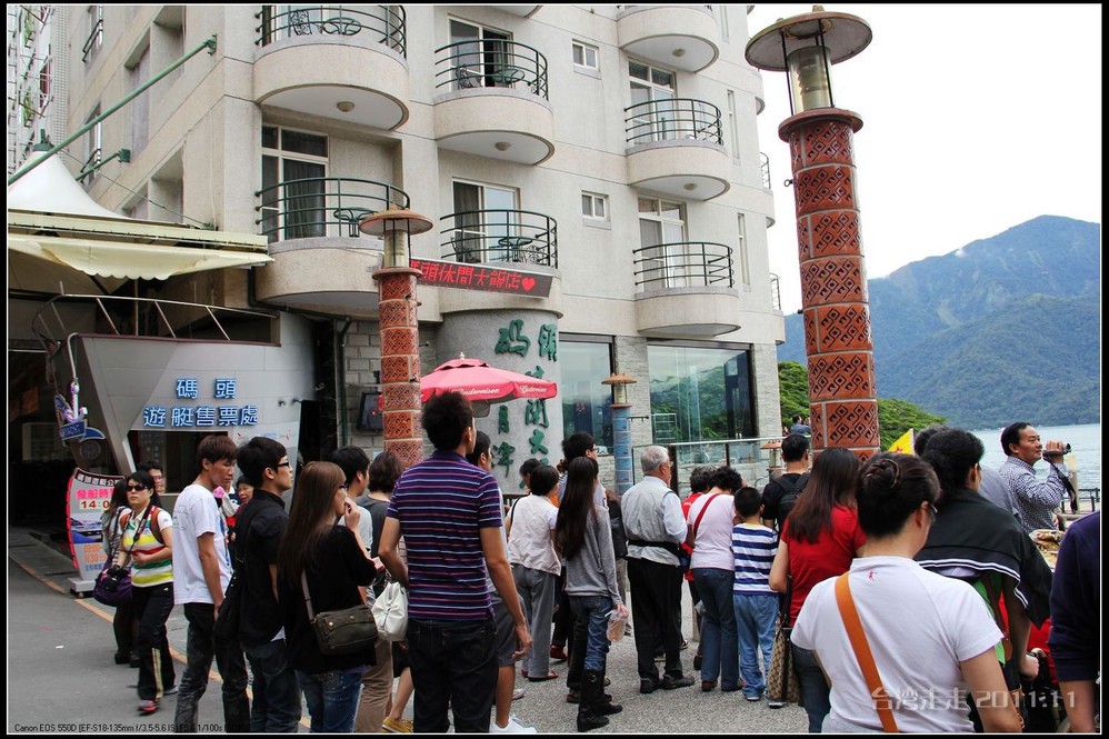 要与“日月潭”照个像还真不容易,排了二十分钟的队才能轮到。到了这里当然也要留个影了,排就排吧。我好不容易在他们换人的间隙照到了没有人做背景的“日月潭”。