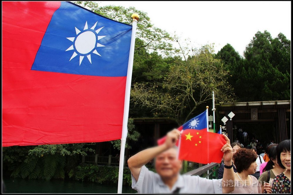 坐船来到了写着“日月潭”题字的山上,我们下船往岸上走时,看到随风展开的青天白日旗,再次拿出了国旗与它一起照像。周围的游客基本也都是大陆来的,看到我们拿出的国旗也愿意帮忙,一个操着东北口音的大汉说:来,我帮你den (四声,就是拽,拉的意思)着,照吧。我很高兴只有我想到了带着国旗来到台湾,很自豪。