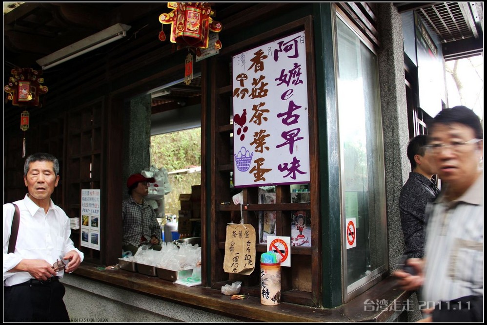 阙导真好呀,请我们吃香菇茶叶蛋 ,是用香菇、灵芝、红茶的老汤煮的,真的好好吃呀。我看了下价格,是NT10元一个。后来阙导给我们讲这个卖茶叶蛋的老婆婆的故事,大意是说:“你们看呀,这周围哪里有什么商铺呀,只有这一家在卖。为什么会这样呢,这就得说到小蒋了,他为什么在台湾人的口碑中还不错呀,因为他比较亲民。有一回他到日月潭来,那天还下着雨,老婆婆躲在别人的屋檐下卖茶叶蛋。小蒋看到了,过去问她为什么在屋子外面卖。她说他们不让她在屋里卖。于是小蒋就拉着老婆婆到这边的屋里,说:以后你就在这里卖好了。就这样,这个老婆婆就一直在这里做生意了,没人敢再轰走她。一卖就卖了60年”。虽然不知道这件事是不是真的有,反正这古早味的香菇茶叶蛋 是真的很好吃。