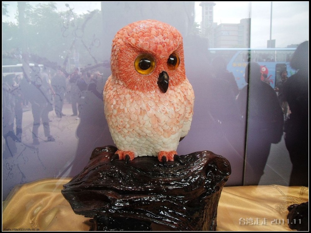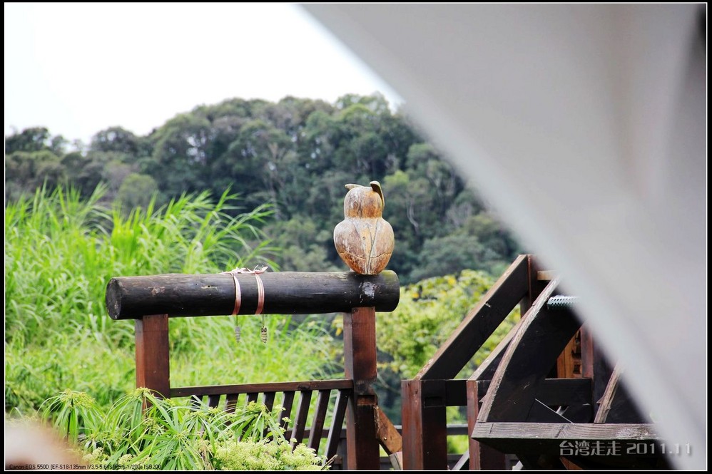 乘船返回码头的路上,路过一个背对着我们的“猫头鹰”,船老大说只要我们大声的向它问好,它就会转过头来看我们。大家还真的很大声的冲它喊:下午好。结果它什么反应也没有。船老大说:它是木头做的嘛,当然不会动了。哈哈哈哈~~~临下船前,他还教了我们一句邵族的问候语:啪旮 林gi(3声,这个字实在找不到合适的)。意思是祝福大家健康快乐。真是好难念呀,舌头都快打成结了。