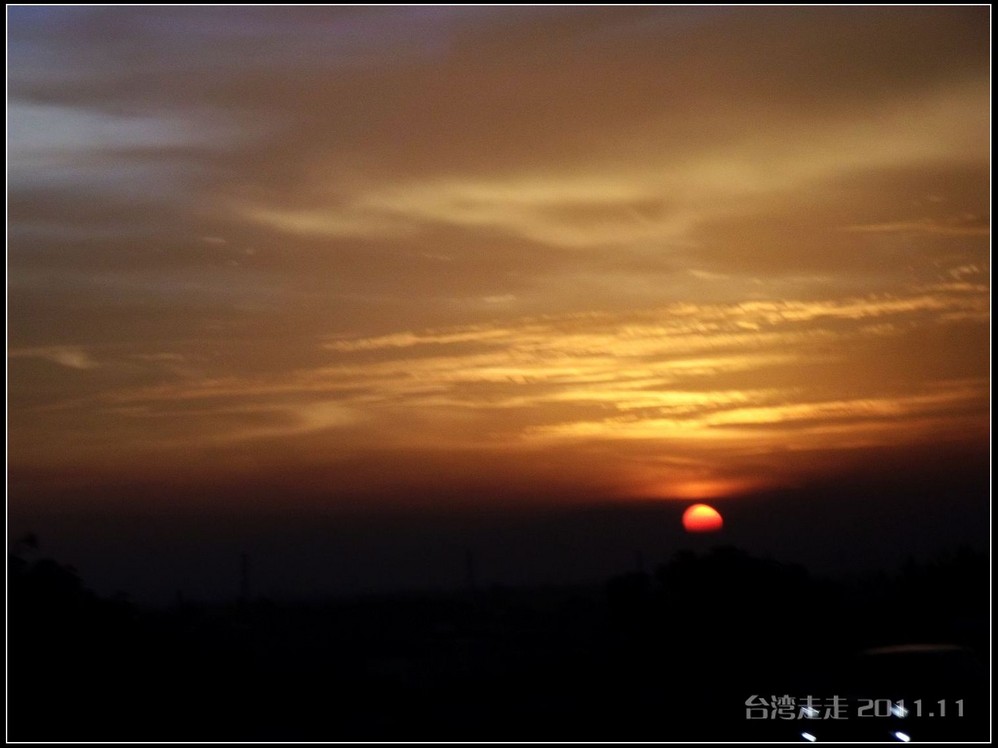 从这里出来后,我们就又就要坐长途前往嘉义 了,路上大概需要两个多小时。一路上听着邓丽君的歌,看着窗外美丽的夕阳,悠哉地坐着舒适的大巴车。我在这个时候往蚂蜂窝上发了一条嗡嗡,不过没人理我。