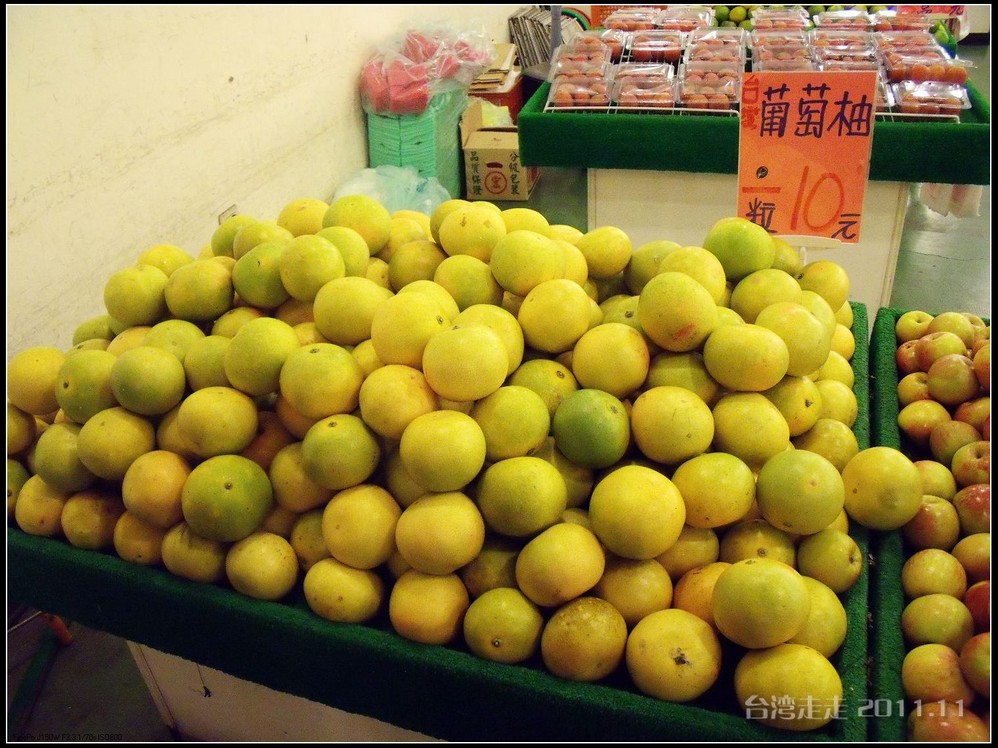 吃完饭,阙导介绍我们在斜对面有个水果超市,可以买水果吃喽。去了一看,有贵的也有便宜的,莲雾是真好吃,可也真贵,有NT120元一斤的。最多的是释迦,不过每天吃饭的时候水果就有,所以就不特意买了。我们买了香蕉NT9元一斤,桔子NT10元6个,葡萄柚NT10元一个。一次买多了也吃不完,随吃随买吧。
