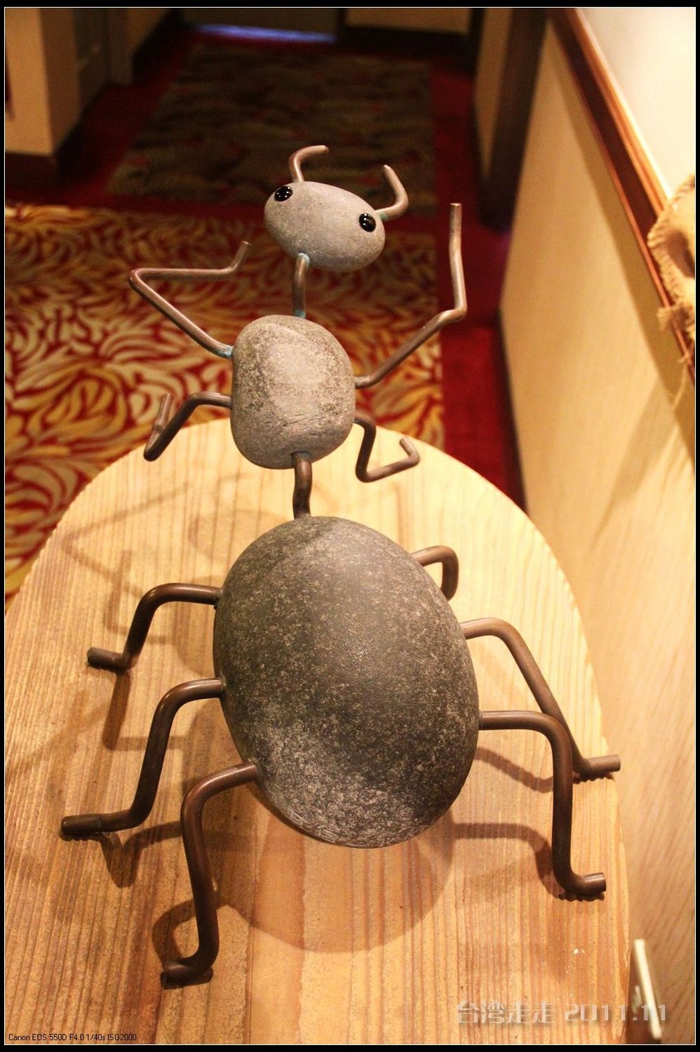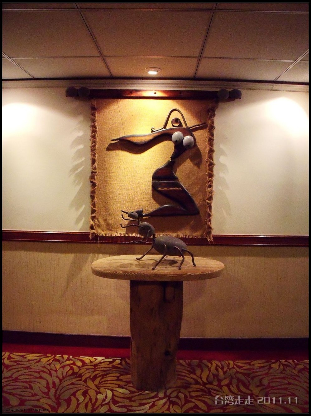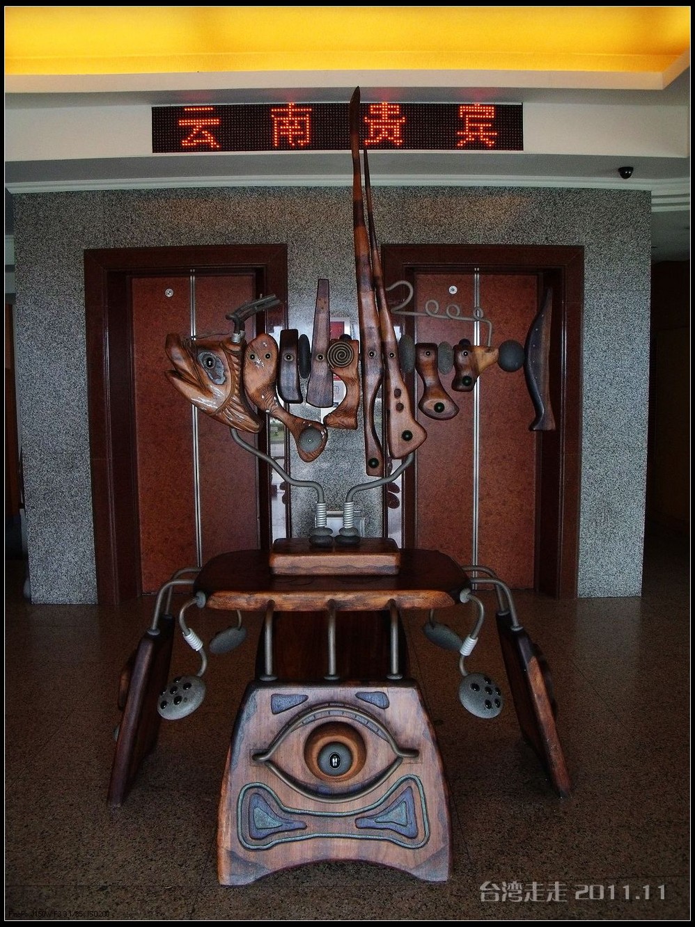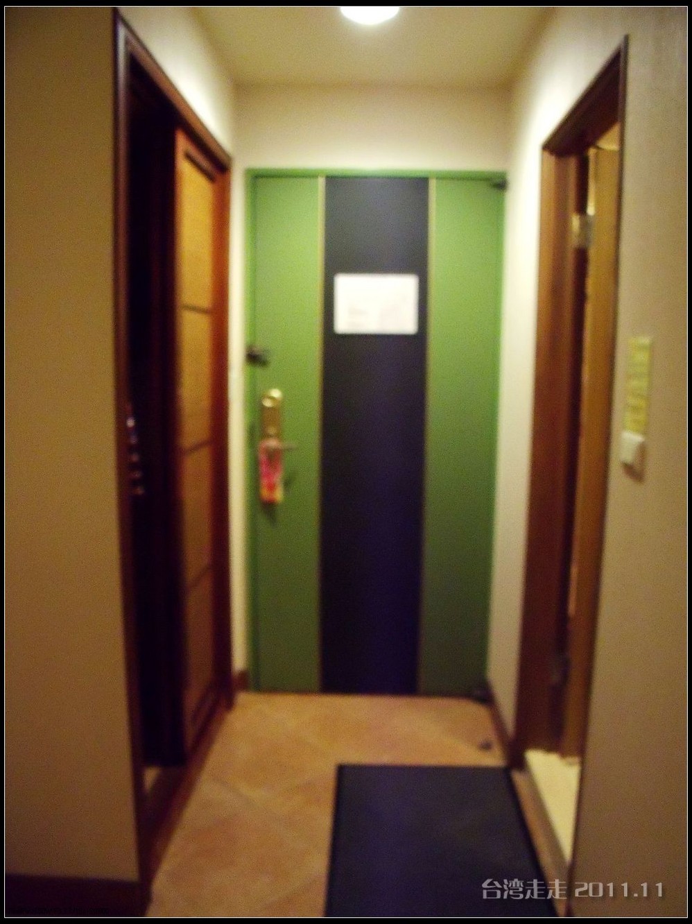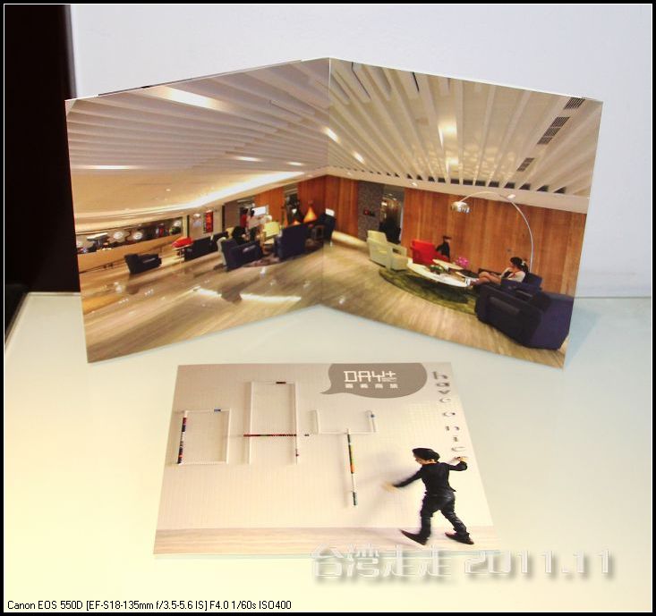 今天晚上住的地方,又让我惊喜一番。叫嘉义商旅 ,进门处就很有趣,有一个雕塑小人,笑咪咪的弯腰站着,脖子上挂着个牌子写着:笑开了,门开了。装潢看上去就很特别,每个电梯间都有不同的装饰。楼里还摆放着各种雕塑,还有嘉义 的老照片,很有艺术氛围。房间里还是好大呀,今天我跟父母一屋住的,两张大床,能睡四个人,配置也是按四人份准备的。还有单独的会客的空间和衣柜、写字台什么的,就像一个大开间的家一样。要是能多住上几天就好了。听说是去年刚开业的。不远处有商场,团队里有人出去逛了,我们一家没出去。明天要早出发,六点半叫早,七点半出发,要去阿里山 了。