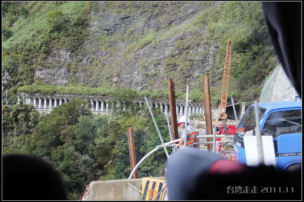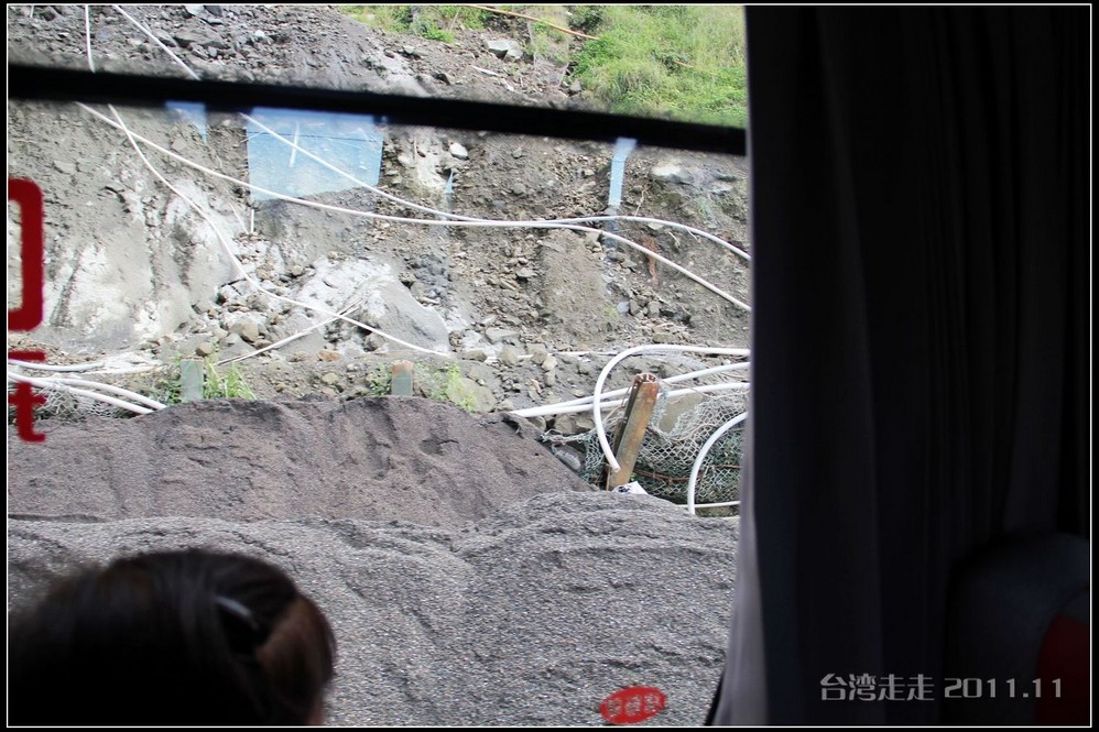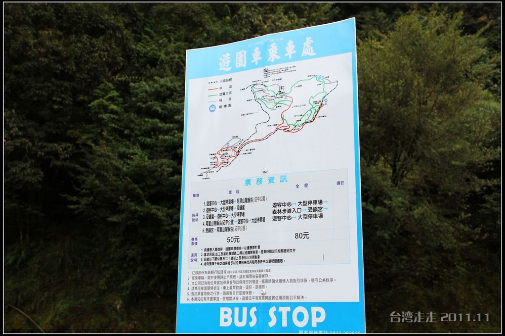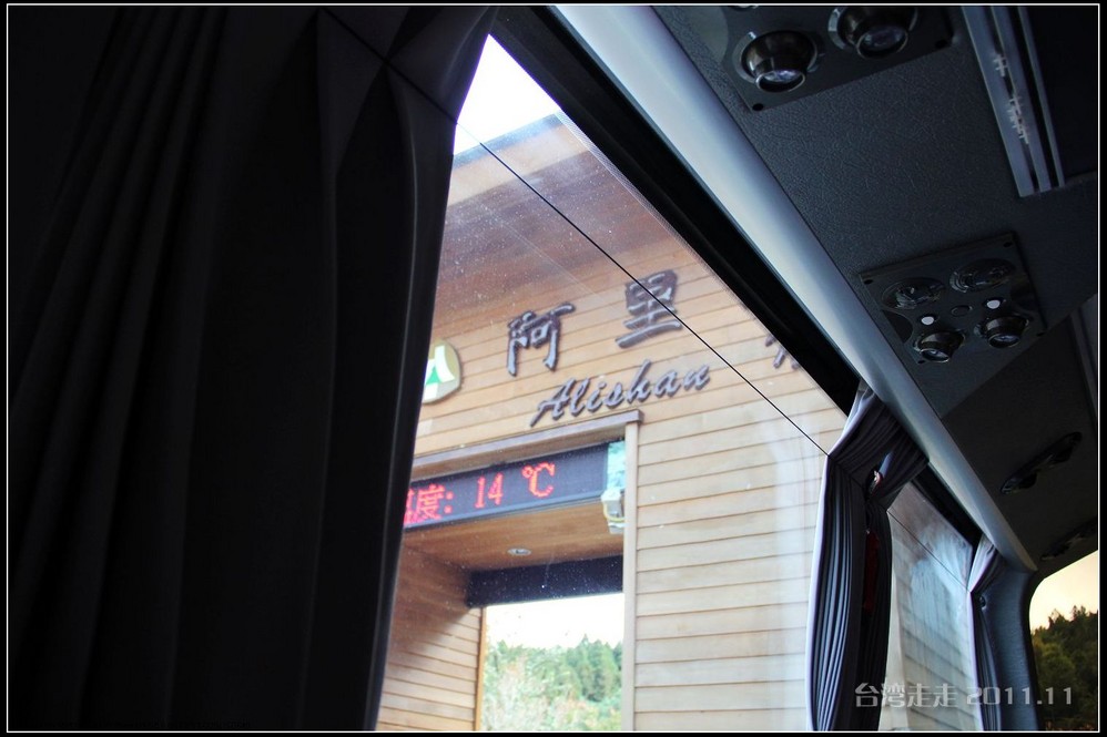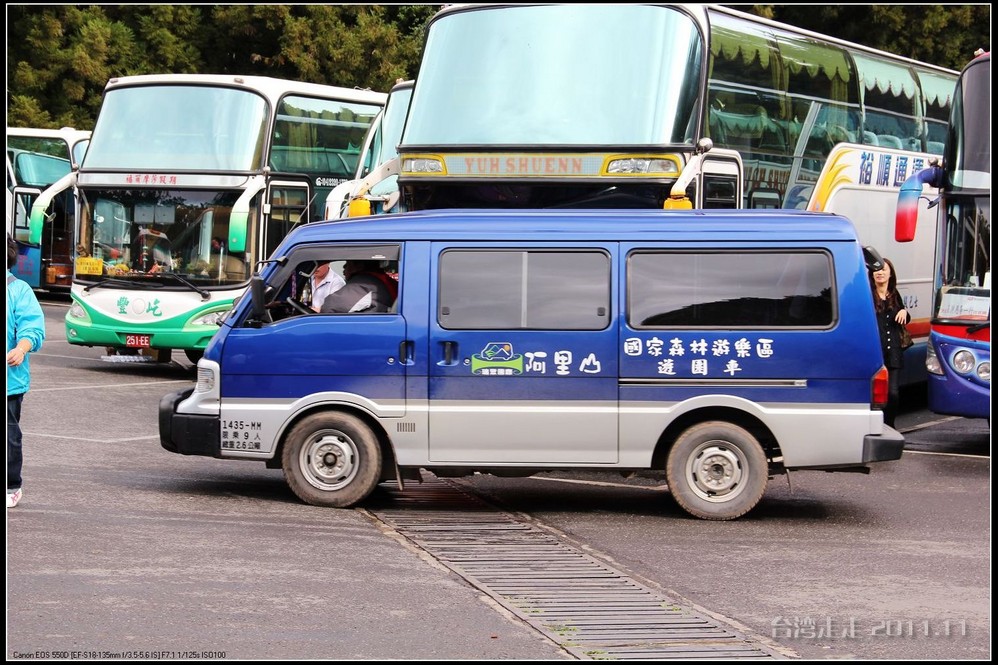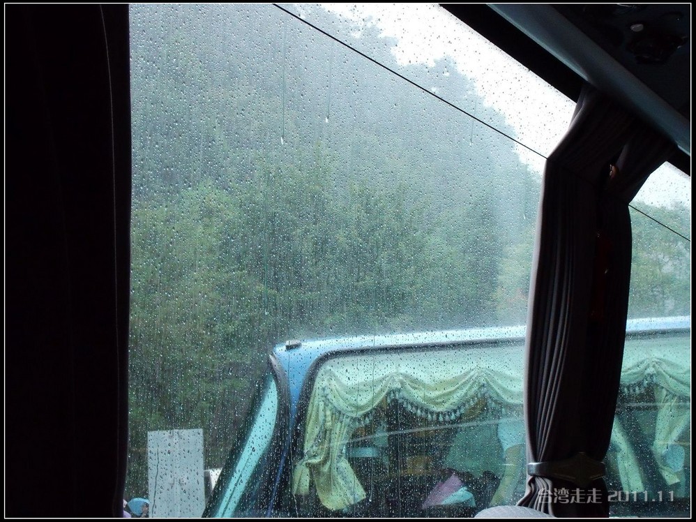 路上因为台风,有被毁坏的路段,现在还在修。可是正修着,又一下雨,就又被冲坏了,所以一路上摇摇晃晃的,有晕车问题的要提前吃好晕车药,一路会走得很辛苦。要走2个多小时到阿里山 。确实是这样,我们一路上左摇右晃的,感觉确实挺大,连车里的东西都有掉了的。老妈是有晕车问题的,还好一早吃了药。