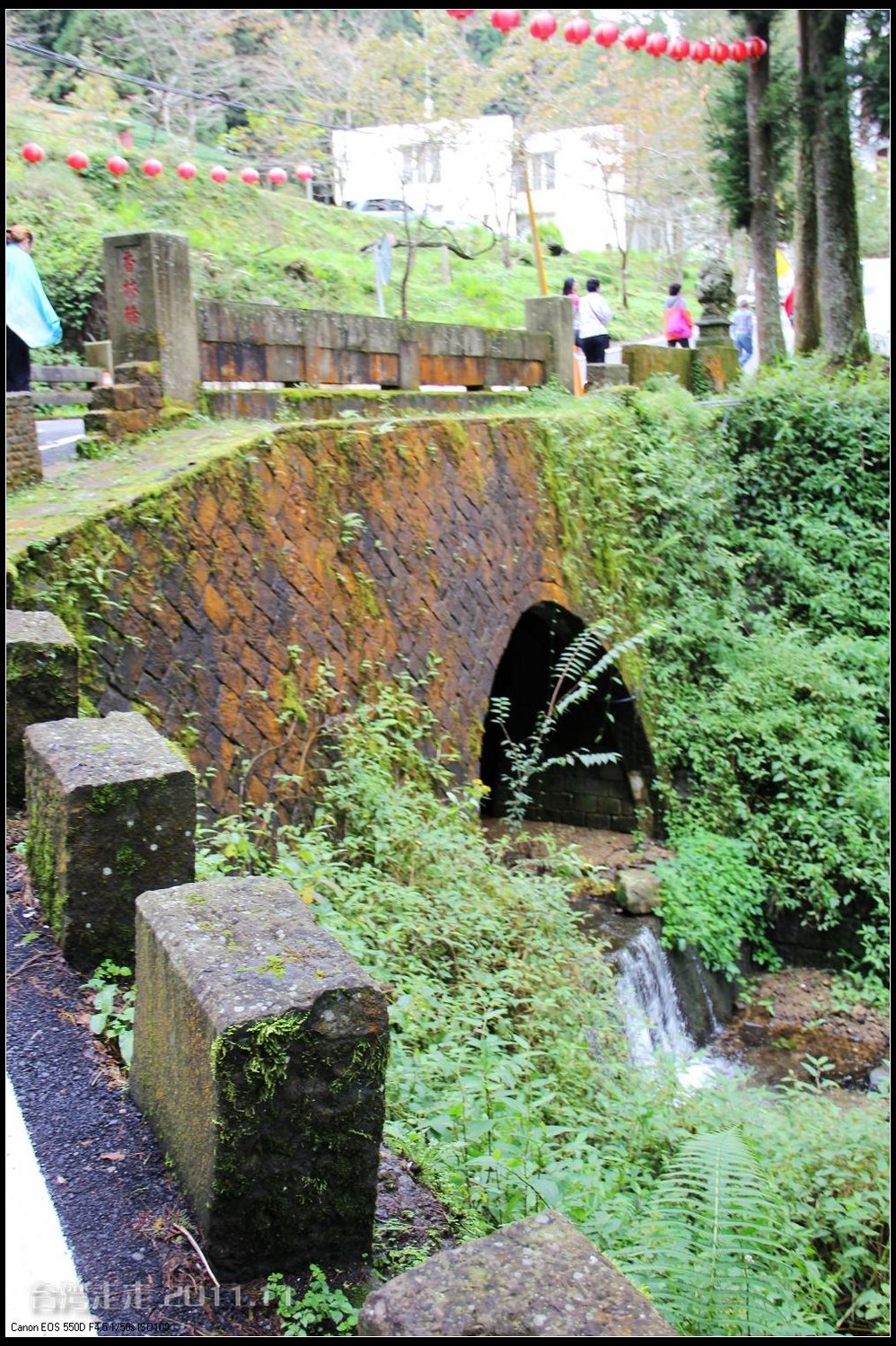 往回走的路上,还走过一个小吊桥,不是很晃。在山中时间长了,连桥身的石材上都长满了绿苔,很有感觉。