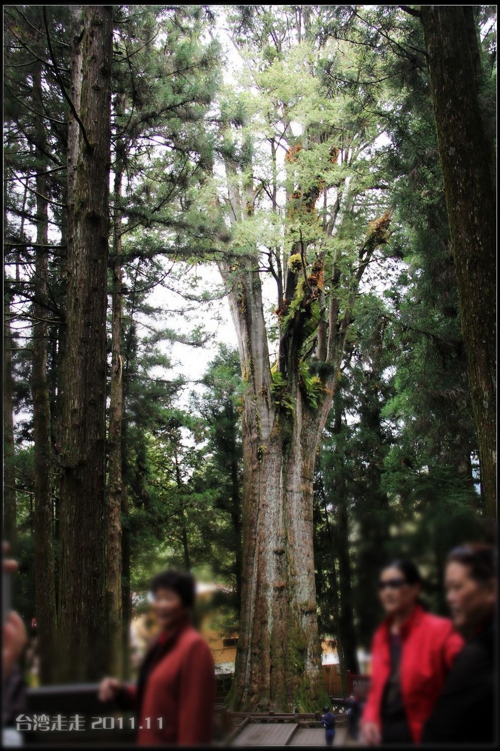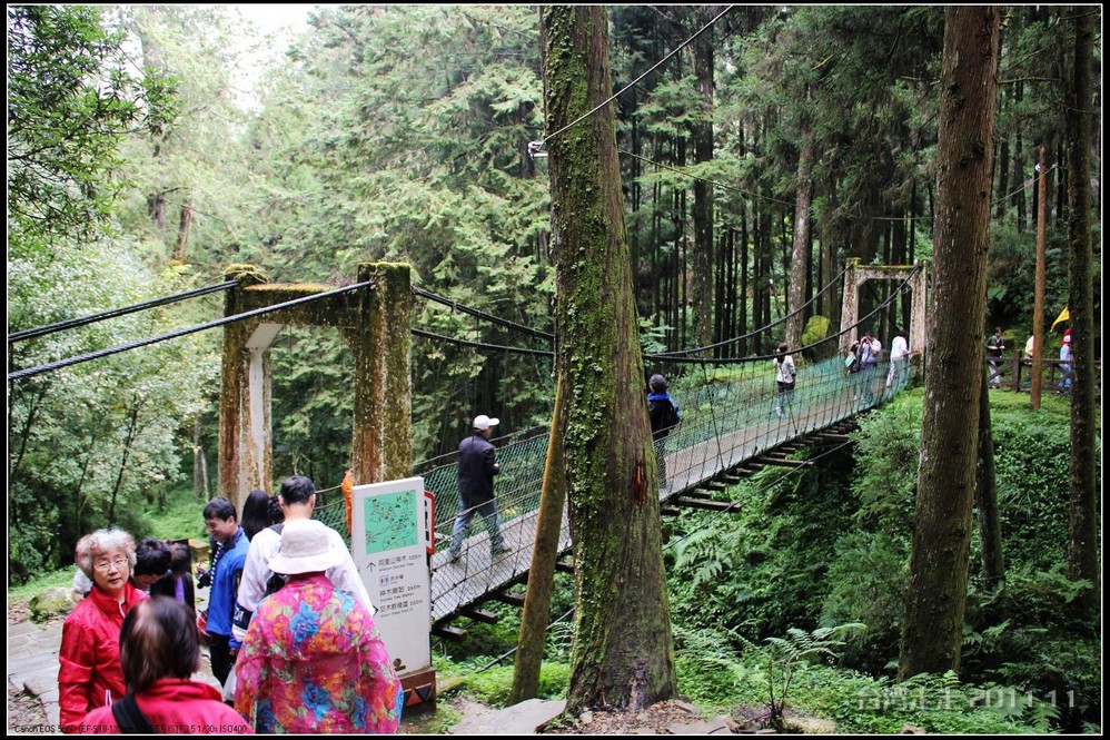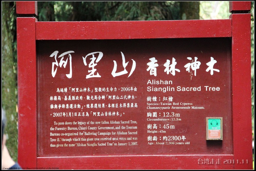 跟随着阙导,我们一路走进了阿里山 茂密的树林中。途中还遇到一所“最高学府”----香林国民小学。是指它的海拔。步入林区时,有一片小湖泊,那泛绿的湖水使人恍惚以为到了九寨沟 。阿里山 国家森林游乐区内还有许多著名的景点如慈云寺、贵宾馆(蒋公行馆)、树灵塔、高山植物园、塔山断崖、石猴、三代木、三兄弟、象鼻木、光武桧、高山博物馆及眠月支线铁路等等,都是到阿里山 旅游不可错过的景点。但我们时间有限,走过看到的也不过只是其中几个。