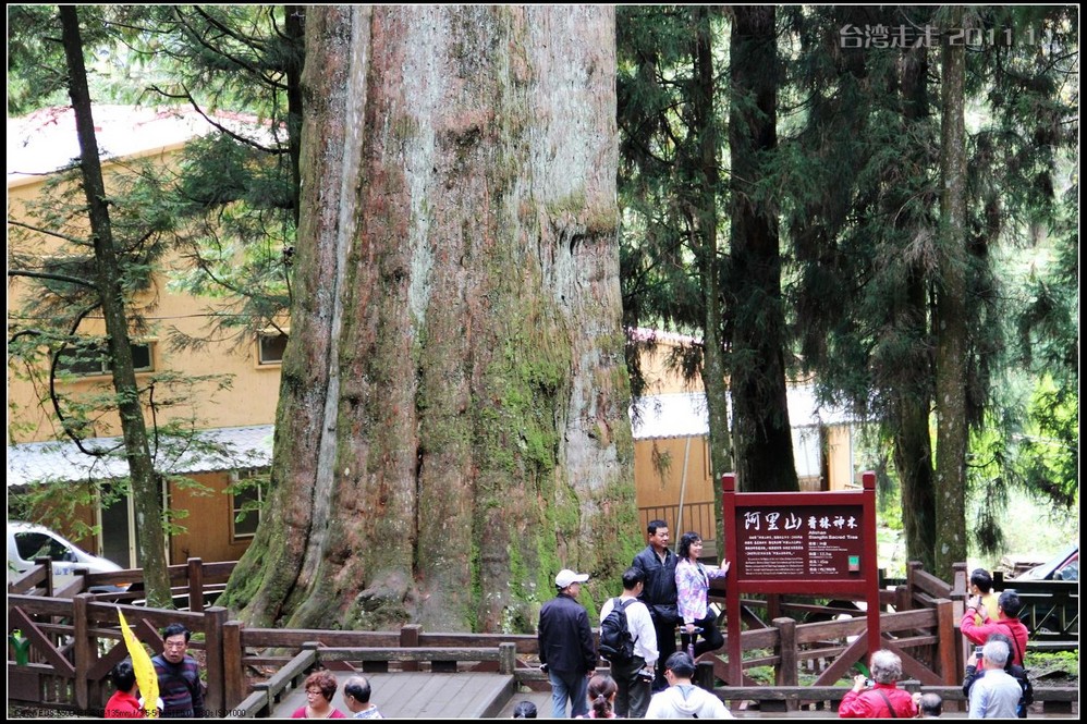 至于桧树,那就又要讲到小日本 了。因为桧树木材耐腐蚀,又芳香、细致,可做工艺品,盖房子。阿里山 里有很多桧树,已经被日本 人砍掉很多拿去盖房子什么的了。不想评价历史,但还是得说一句:真讨厌!阿里山 森林在日治时期经日本人 测量结果,红桧原始林有三十万棵之多,如今游客来到阿里山(/poi/965.html) ,所见的森林早已不复当年的阿里山 雄伟壮阔的原始桧木林。目前所能欣赏到的神木 群,则以林管处所辟建游乐区第一、二巨木群栈道附近,以及慈云寺到阿里山 神木 沿途步道一带的红桧为主,约有41棵左右,其树龄约为600年至2300年左右。其中比较有名的是阿里山 神木 、光武神木 、香林神木 (28号神木 )、千岁 桧神木 与12号神木 。