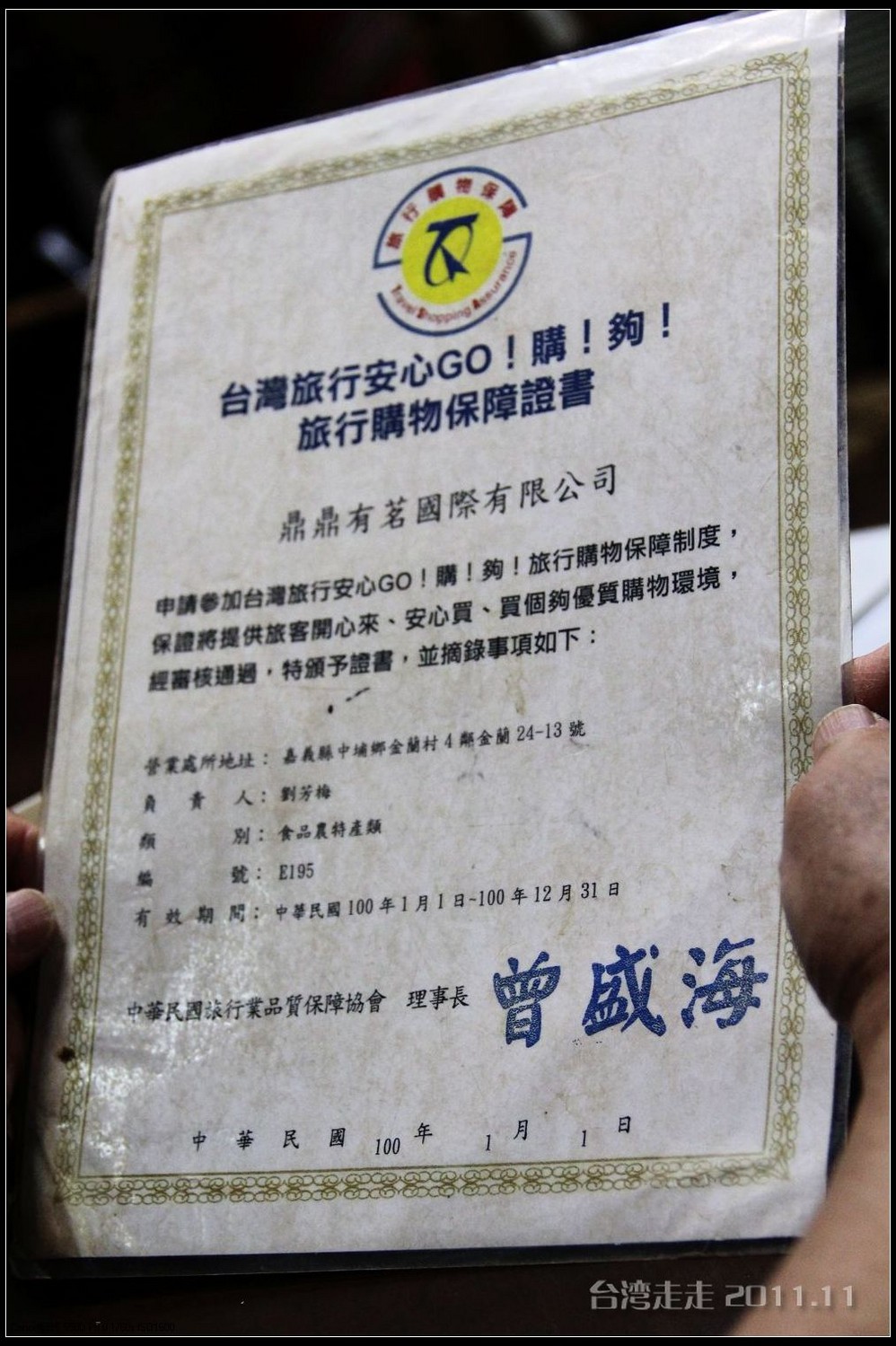 辛亥革命一百年纪念的时候,台湾 地区民国一百年的时候,终于,我们踏上了祖国的宝岛台湾 。2011年11月17-24日,与父母亲一起随旅行团前往台湾 游玩,一路都很顺利,真是玩好、吃好、住好、花好。三个人的团费加购物,共用二万四千元左右。当然了,跟老人一起出门总是很省钱的,加上台湾 的物价不低,东西买的还是很少的。