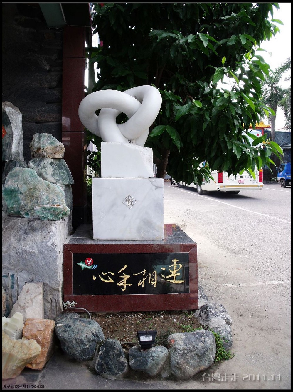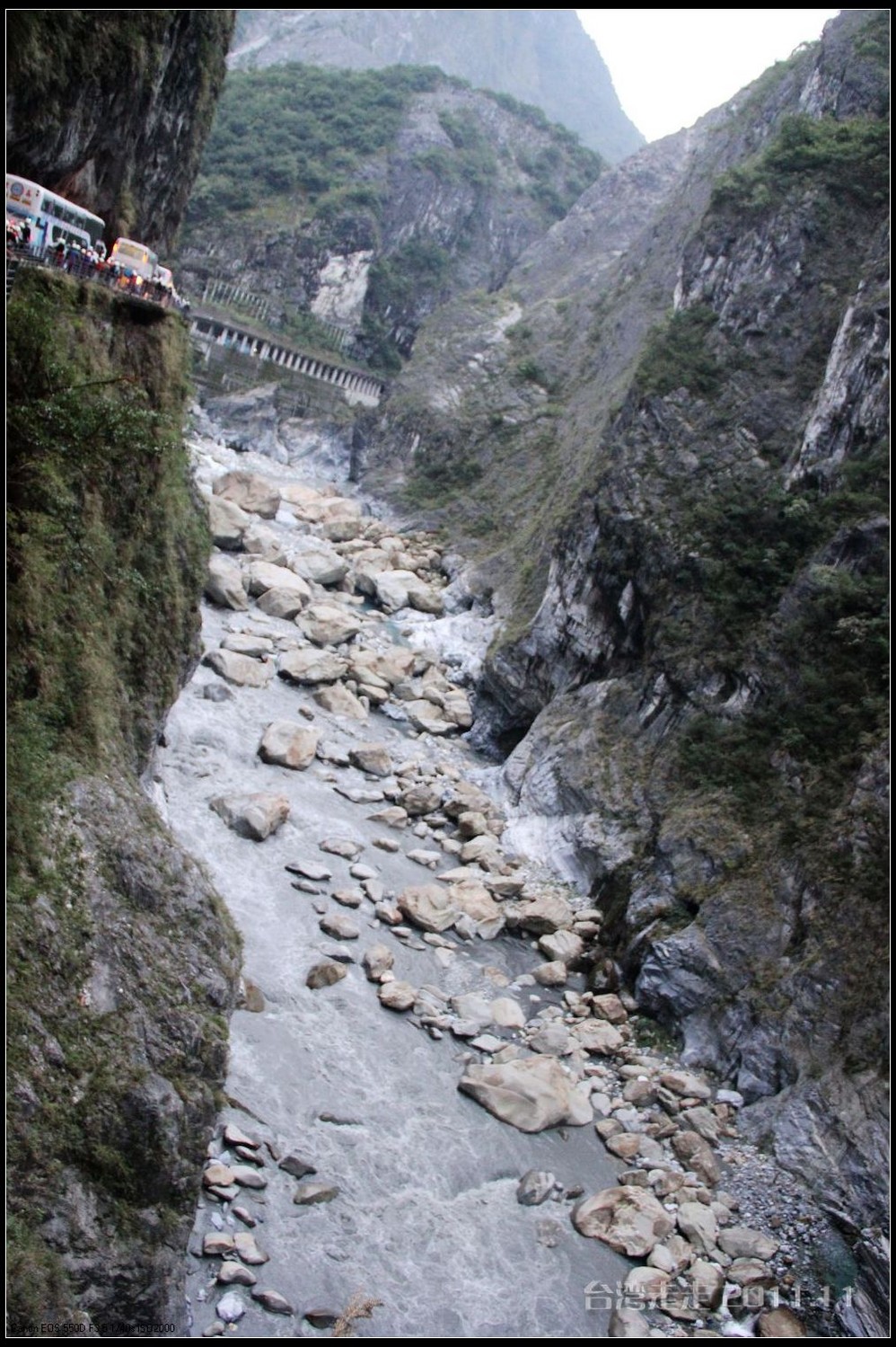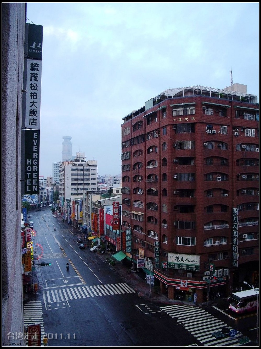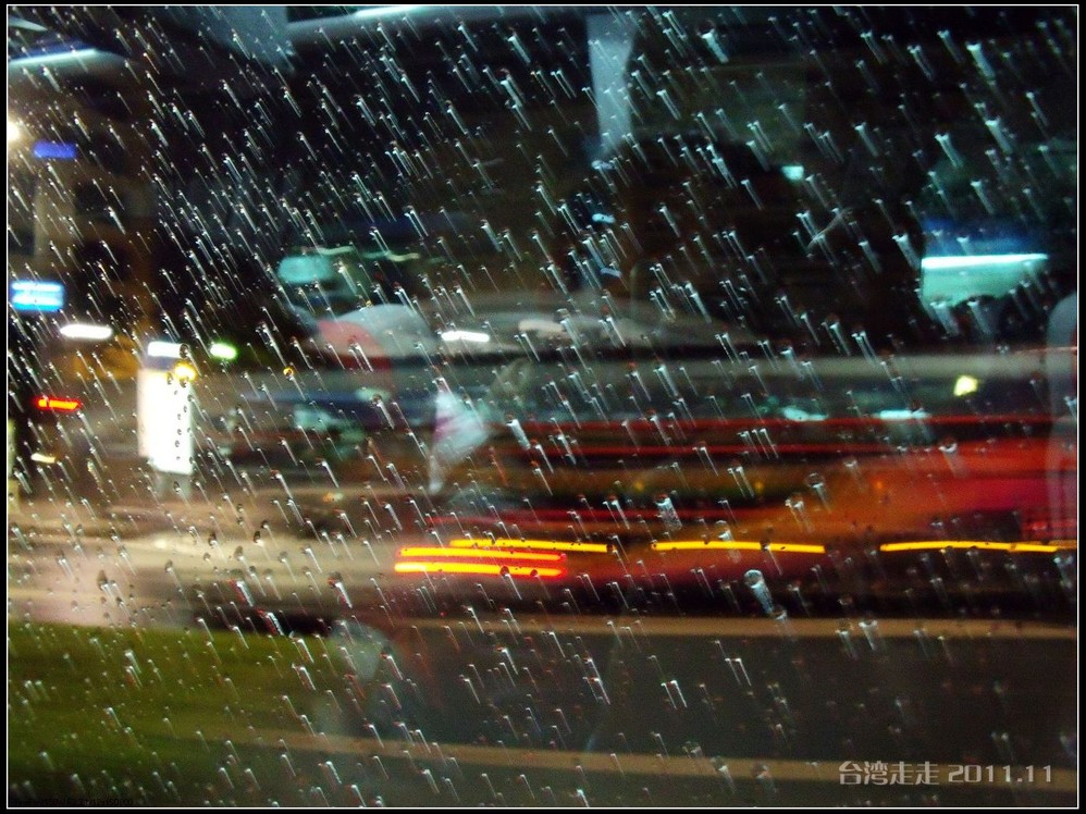 免税店出来后外面又是飘着小雨,真应了那首歌“冬季到台北 来看雨”,随时都有可能下雨呀。门口的车太多,我们等了半天,大巴车也开不过来。后来干脆停在二百米开外的路口,我们走过去上的车。