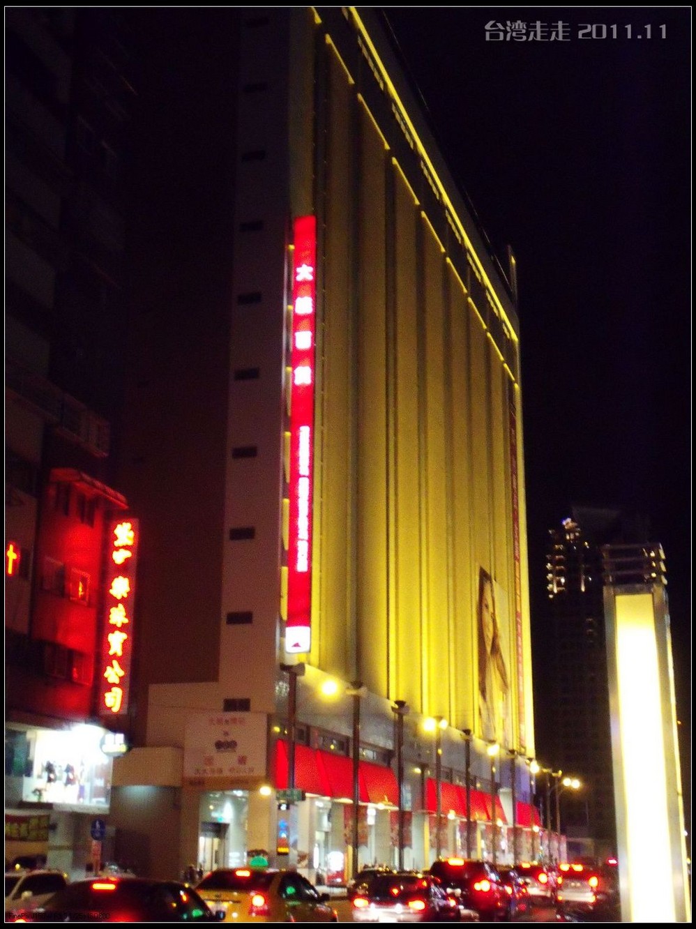 吃完面,我们开车回到酒店,路过了台湾 著名的小巨蛋,一会儿放好行李后要来转转。台湾 的出租车都是黄色的,阙导说当地人称:小黄。有人要去101大楼看夜景,我们今晚先不去了。