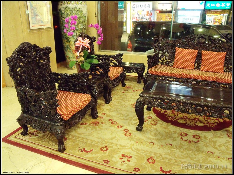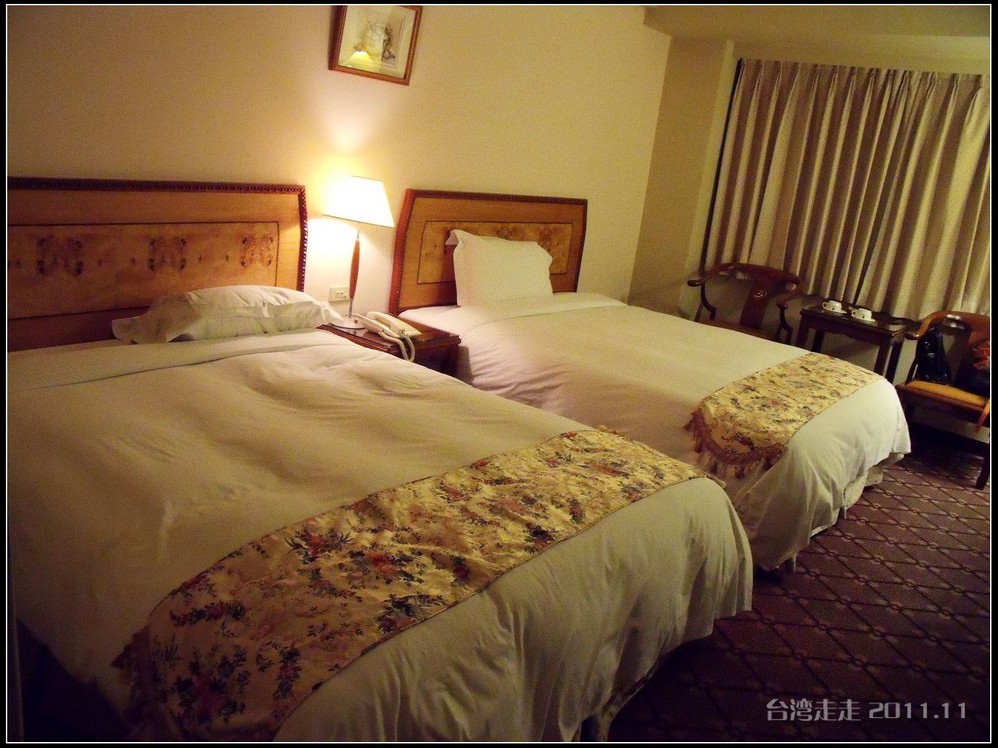 从故宫出来已经快六点了,我们先去“驾崩”,这里可不是指皇帝死了的意思,这是阙导教我们的闽南语,意思是吃饭,哈哈。第一天的晚饭是在“状元楼”,八人一桌,八菜一汤,饭后水果。吃完饭继续坐车准备回酒店。路过一座大厦,阙导介绍说那就是雄狮公司的总部大楼,光这一座大厦里的员工就是1500多位,还不算他们这些导游,和专属的大巴车队的司机们等等。看来在台湾 当地应该也是规模不小的公司了。