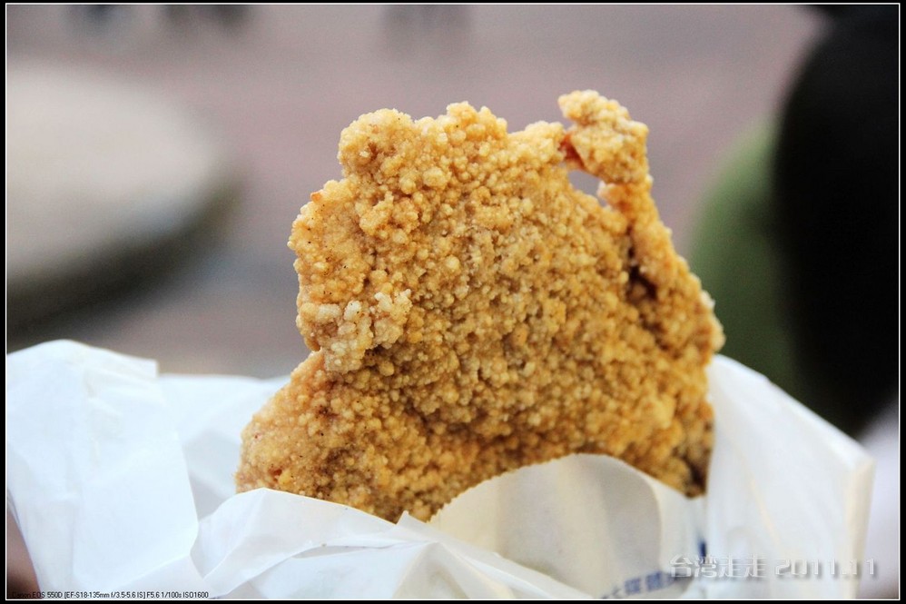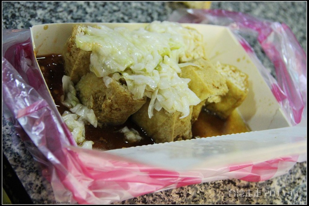 哎哟,闻着那股味儿,就知道有卖炸“臭豆腐”的了,我爸很好这口,我到也可以吃,老妈早捂着鼻子跑一边儿去了。我们买了一份,NT35元。我跟老爸一人一半的分了。还差点儿劲,还不够臭,哈哈。