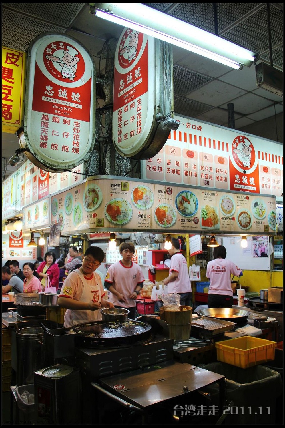 还没吃几样,肚子已经饱了。还没把整个夜市逛一圈,就已经快到集合时间了。最后打包一份蚵仔煎吧,台湾 著名的小吃怎能不尝尝,NT50元。在夜市里我们一共花了NT255元,合人民币才54元,也太便宜了吧。