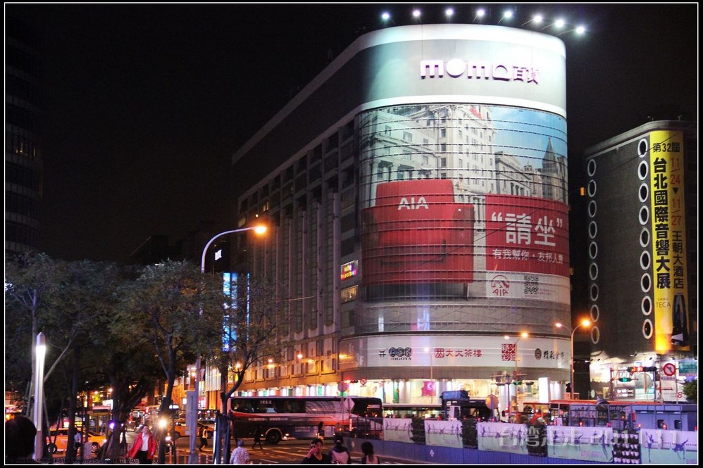 离酒店不远就是位于南京 东路四段上的小巨蛋了,夜晚的小巨蛋有大块的液晶屏播放着各种演出的介绍,和公益性质的广告,还有各种美丽的图案。小巨蛋的著名不光是有多少歌星来这里举办过演唱会,就连2008年马英九的就职典礼都是在小巨蛋举行的。对面有个MOMO百货,只是逛了一圈,因为晚上吃的真不少,消消食,回去好睡觉。