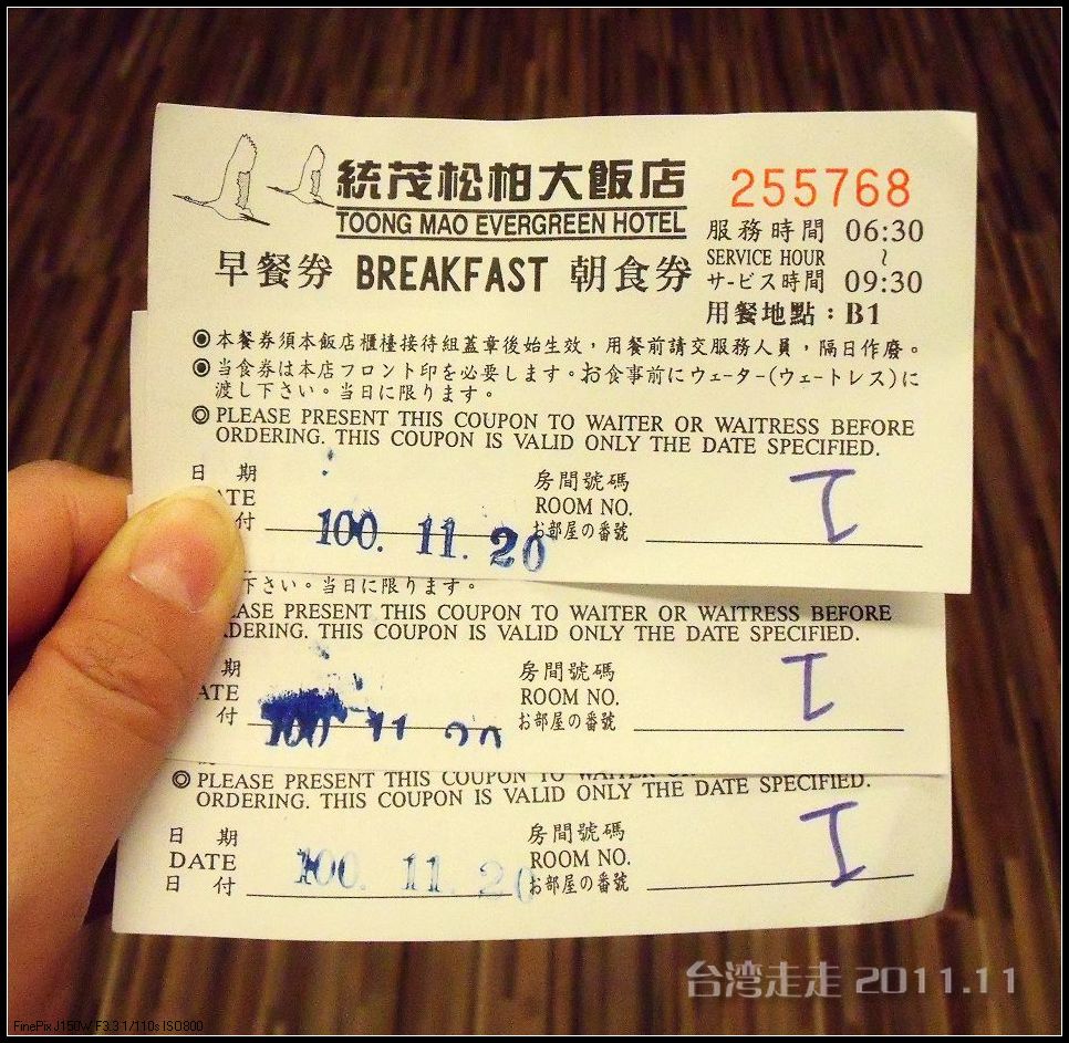 在台湾 的最后一天了,感觉好快啊,我的旅行就要返程了。吃好早餐,大家大包小包的行李全都扛了出来。在等着大家集合上车的时候,我终于找阙导换来了那张绿色的200元纪念币,加上这几天中找钱遇到的“民国一百年”发行的硬币,全都做为纪念品保留起来。
