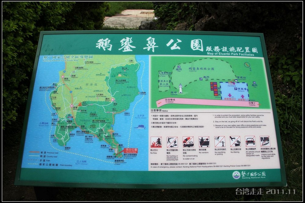 这次的环岛行,由北到南再回到北,行程约1900多公里,但有两个地方很有名的地方去不到,它们是离岛 的澎湖 岛和绿岛 。澎湖 列岛是位于台湾岛西部的台湾海峡中的64个岛屿的总称。绿岛 位于台东 东方约33公里的太平洋上。绿岛 之名最早是从那首旋律十分优美的《绿岛 小夜曲》中知道的。“这绿岛 像一条船,在月夜里摇呀摇;心上的人儿在我的心坎里飘呀飘……”。究竟绿岛 的月光夜色有多么美妙迷人,我们只好自己去想象了。