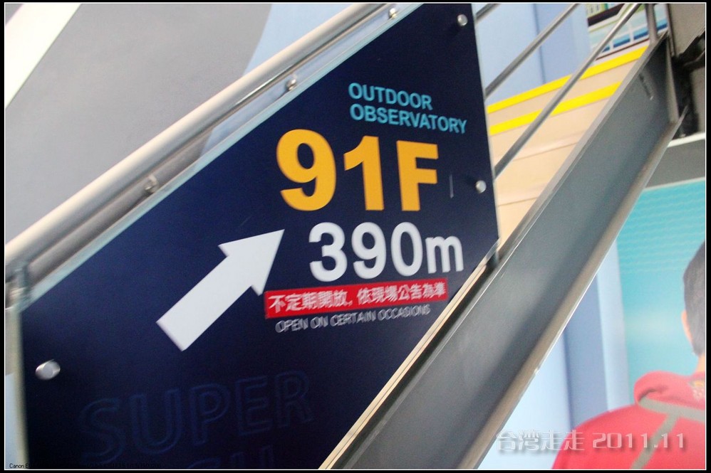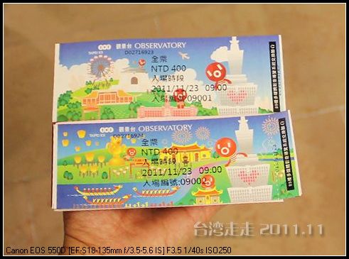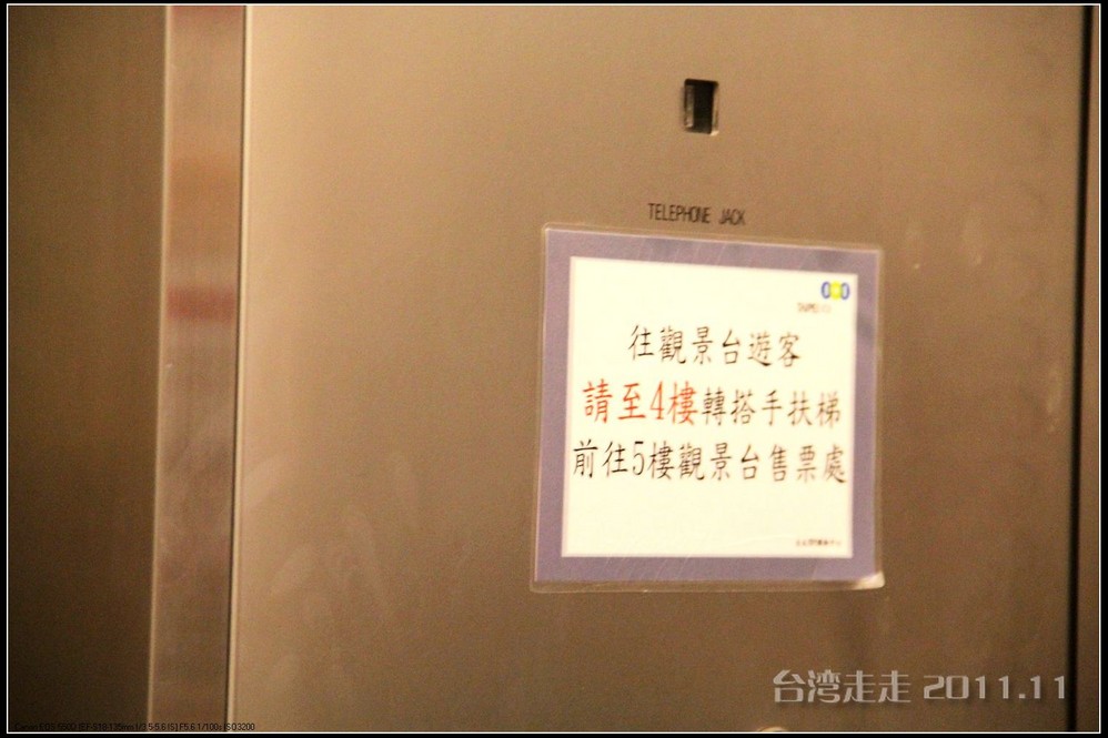 要想登高远眺,首先要坐电梯到四层,再搭扶梯到五楼才可以。观景台的门票是NT400元一位,我和爸去的,合一人86块人民币。