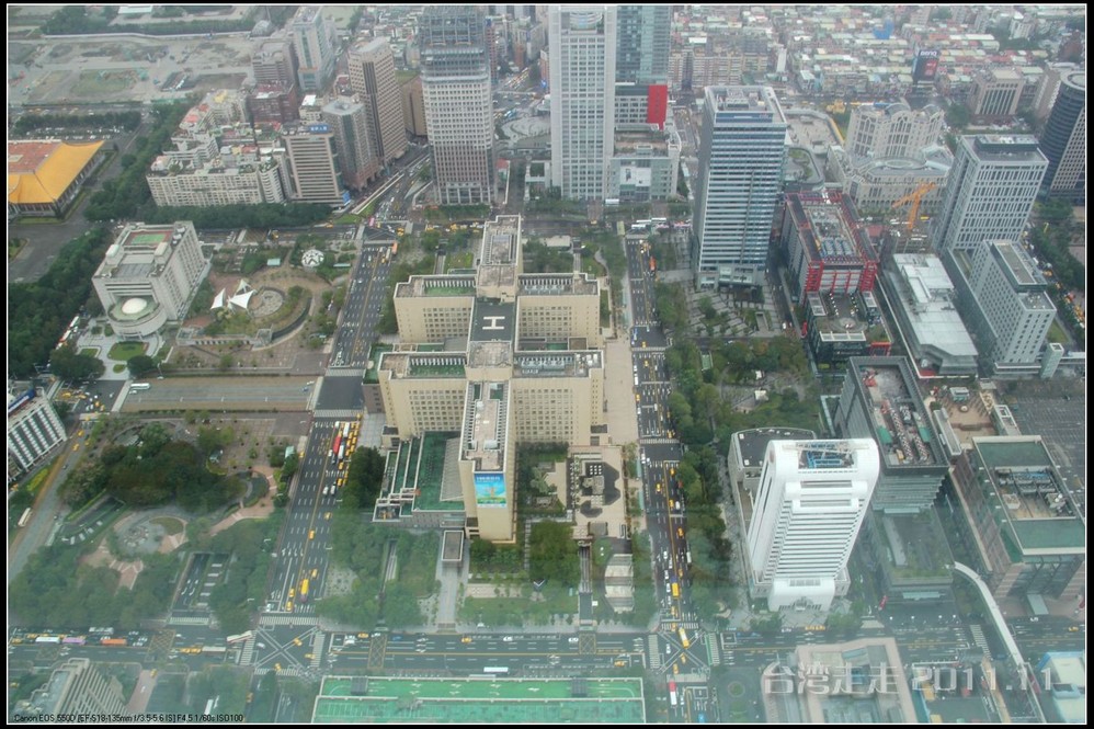 大概走了40分钟,终于来到了台北 101大楼。边上是台北 市政府的办公楼。在这里就已经可以看到高高的101了。