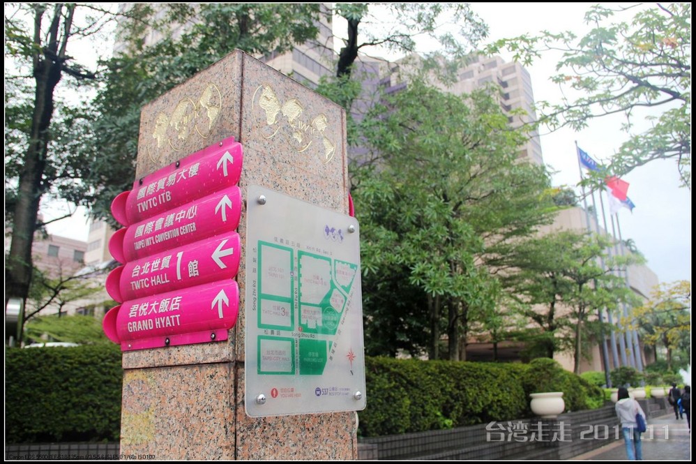 酒店的早餐七点才开始,门口有个小景区,水池里的鱼个头很大。吃完早餐,我们就出发了。准备走去台北 101大楼。途中可能走错了路口,以至于稍微绕了点路,全当欣赏台北 的街景了。问路的时候,我们说:yāo零yāo大楼怎么走?当地人说:什么幺零幺,不清楚呀。吓我一跳,她怎么连这么著名的大楼都不知道!没过两秒她又说:是一零一吧?…… 我恍然,原来他们不知道“幺”就是“一”,汗!