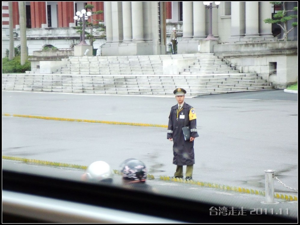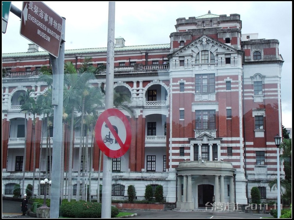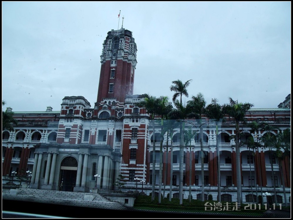 接下来,我们开车来到了台湾 最高统治中心----“总统府”。“小马哥”现在仍在这里办公。阙导说不可以久待,而且也不能离得太近,只能远远的照几张照片,10分钟左右就离开,感觉很紧张、很恐怖。我们一下大巴车就直接穿过马路,阙导在后面直嚷:要走人行横道啊。我不想说什么,只能说素质不是一朝一夕能培养出来的,这就是差距吧。