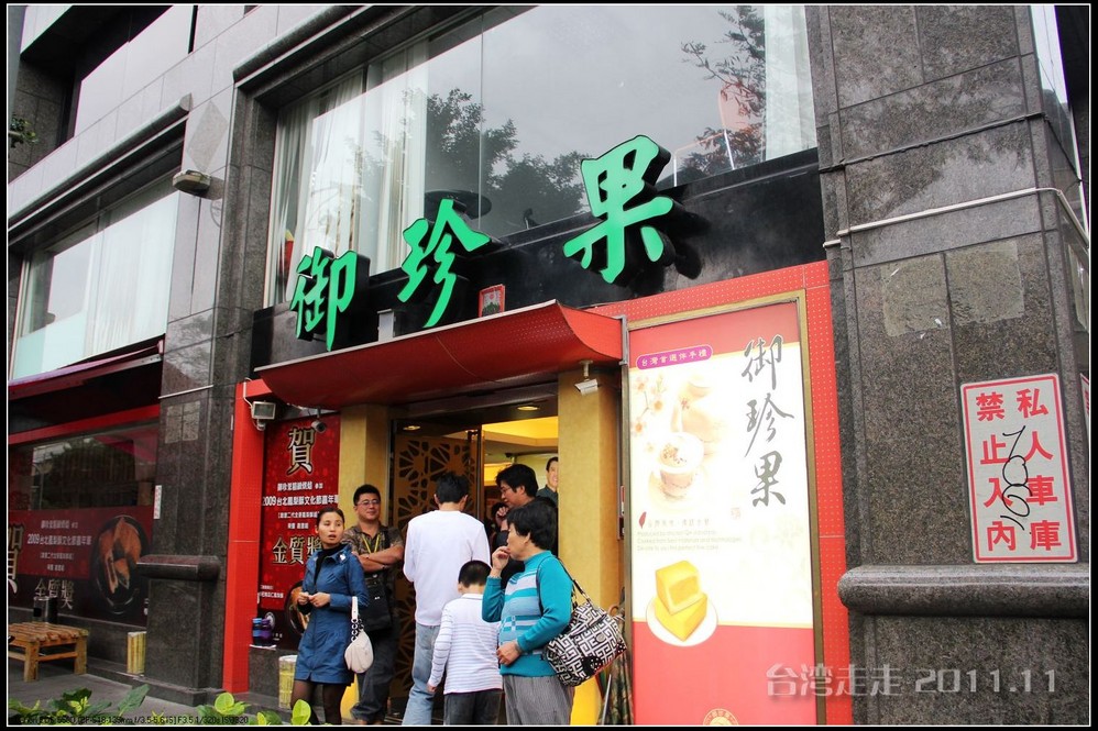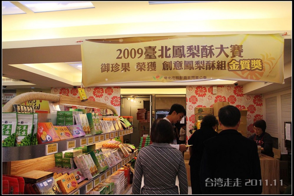 在台湾 的最后一个实质性的下午了,接下来不仅是大饱口福,也是大把花钱了。我们先来到了“御珍果”,它家的凤梨酥可是得了金奖的。阙导说除了凤梨酥,还有一种绿豆皇也非常好吃,每次去他也会买的。