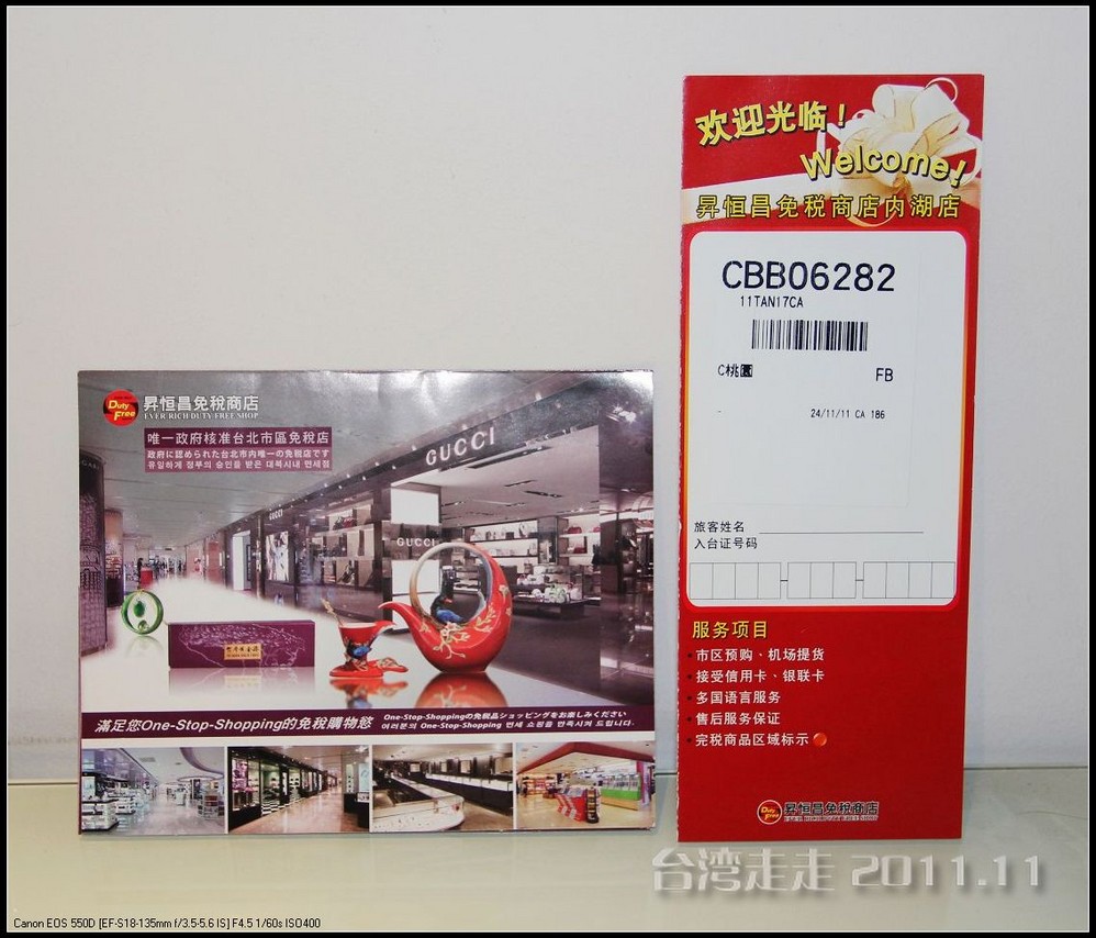 这里阙导发给我们每人一张写有我们明天航班号的卡片,也是结算的时候要出具的,因为有的商品是当时不能拿走的,要到机场取货,就怕便宜的免税品成为赚钱的工具。我看到我们领队庞小姐拿的是张蓝色的卡,不知道像他们这些导游呀领队呀的买东西,是不是比我们客人买还要便宜。