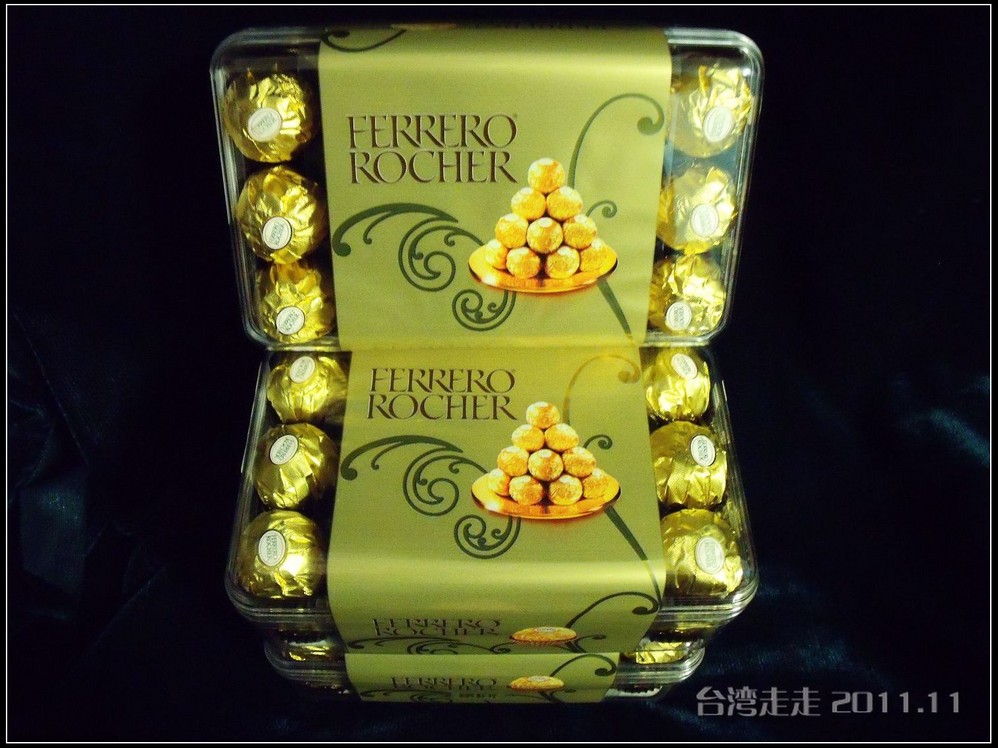我们都准备出去了,碰上了团友,她们很热心的介绍,问我们买没买费列罗的巧克力,说是很划算,买三盒还打八折呢。我其实刚才看到了,怕一说想买,爸妈又反对,就没提。不过经她们一说,我们也回去买了三盒,一盒是NT300,买三盒再打个八折,才合RMB51.35元一盒,确实便宜。回北京 后在超市里看到特价最便宜的时候还要90元一盒呢。