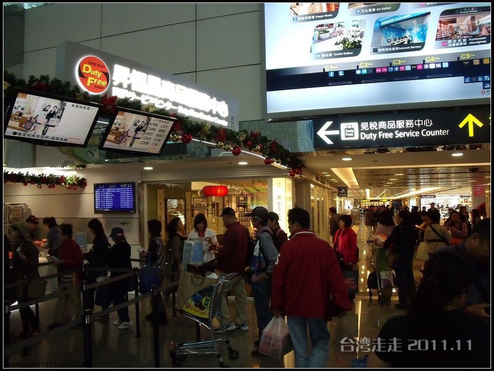 出关了,一切都办好了。这时我手里还有差不多3000元新台币,拉着爸妈在商品区逛来逛去,其实我还是想再买点什么,比如 听讲风水说如果家里的大门对着窗户,可以在窗上挂一个貔貅,结果没货。再买巧克力吧,好像又有点多了。溜达了半天也没有花出去。
