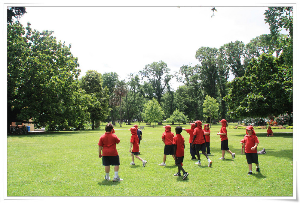 小屋所在费兹洛公园里上体育课的小学生