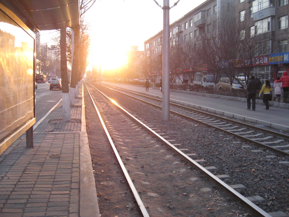 到长春 电影院后下车,这时候太阳已经要下山了,夕阳照在车身上,拉着长长的影子.........