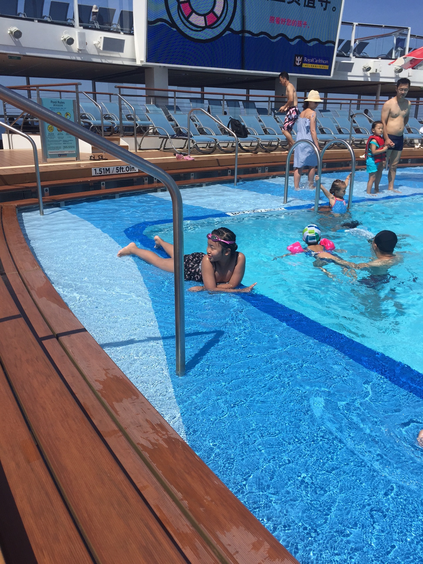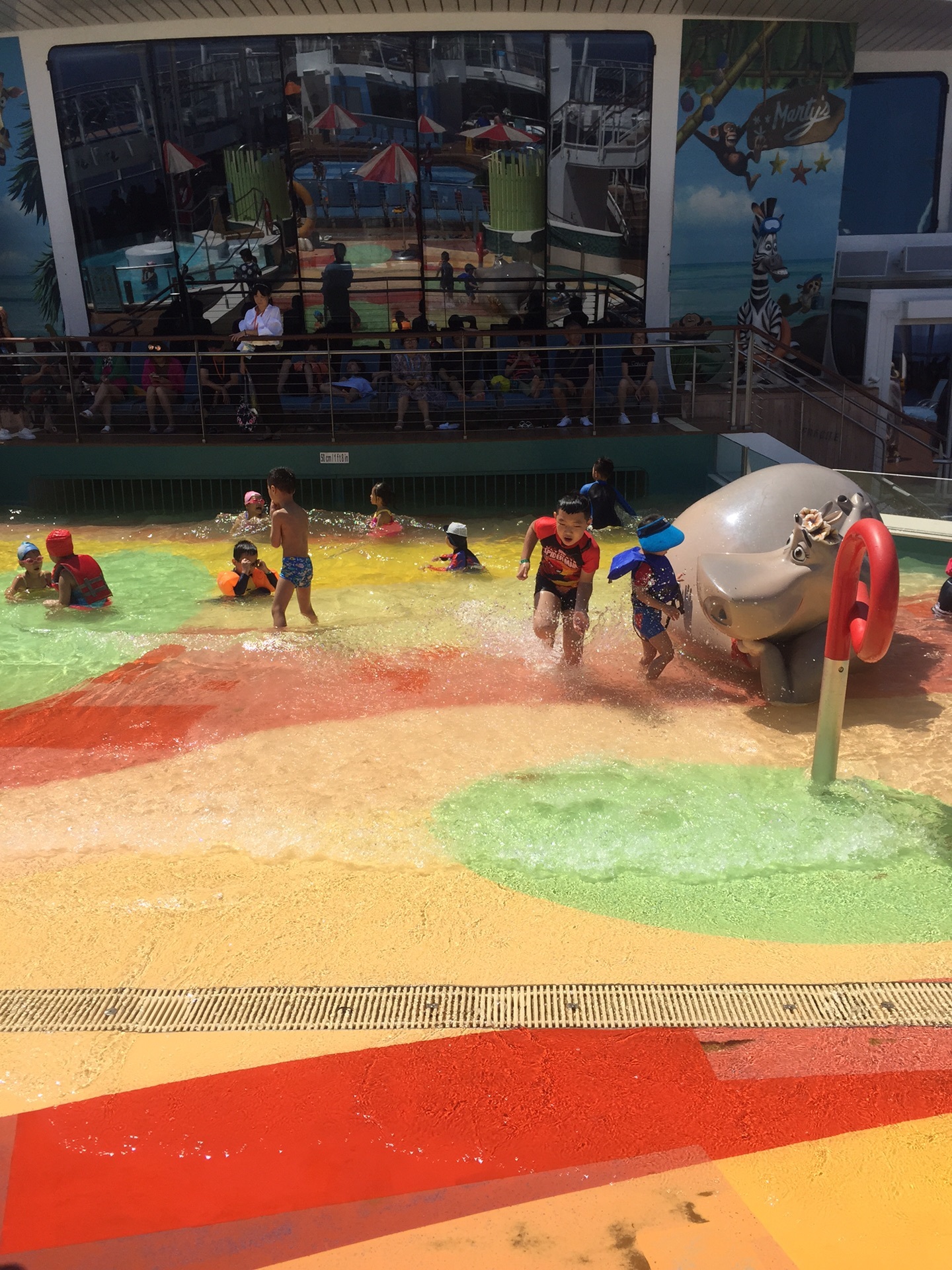 邮轮上玩的项目是重点,两个小朋友倒是把船上所有能玩的都玩遍了。岸上线路倒不怎么感兴趣,一来上岸的时间很短,再加上上下船又占了三分之一的时间;二来,日本线的港口都是小农村,也没什么景点,购物更是没什么东西。所以我们虽然是两天上岸时间,但是第二天果断地决定留船上。这决定太明智了,平时排长队的项目都可以随便玩,太爽了。