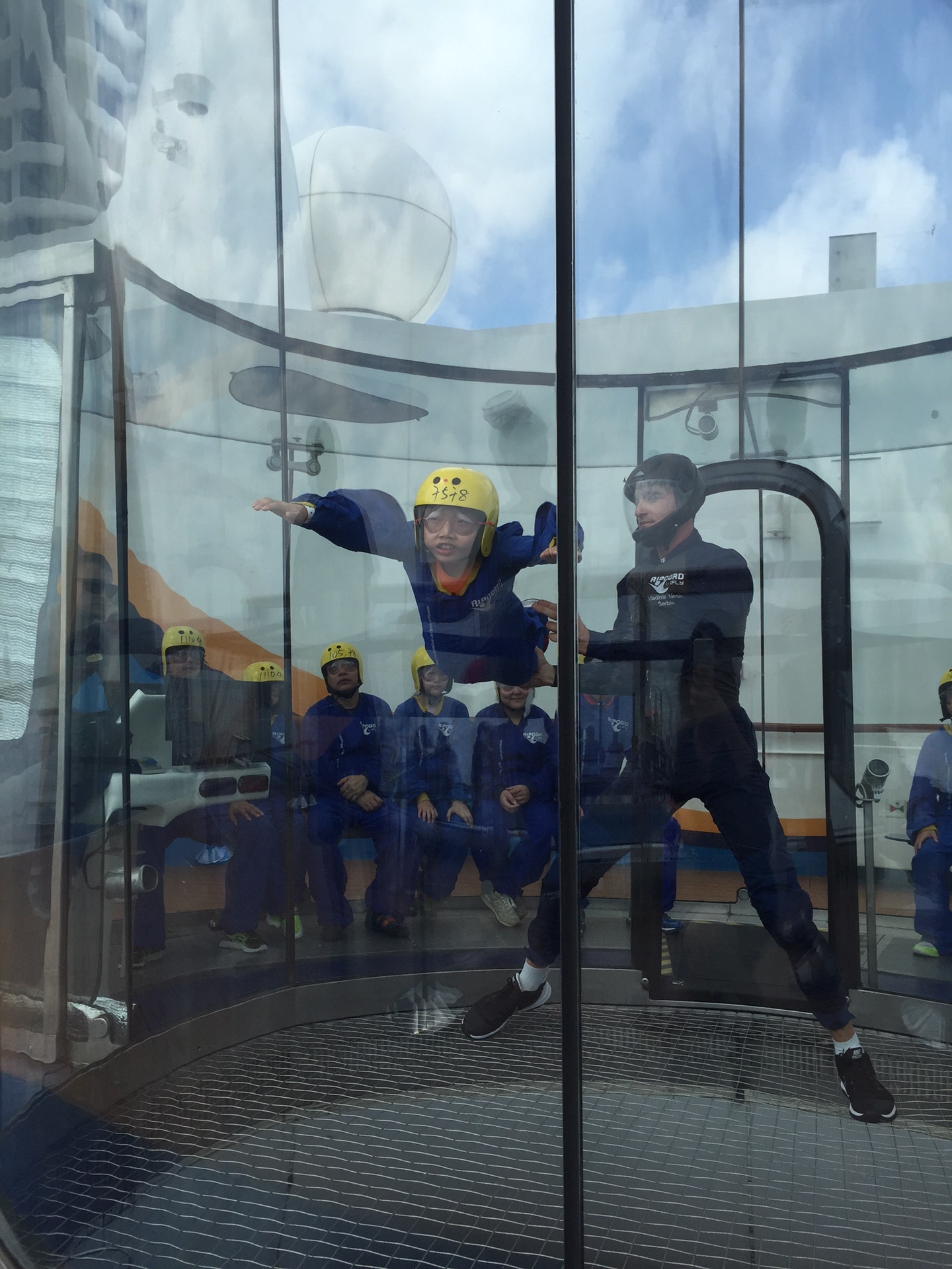 空中飞人,量子号的另一大明星项目,虽然只有一分钟的体验时间,不过远超北极星,推荐!脸被吹得都分不出哥哥和妹妹了