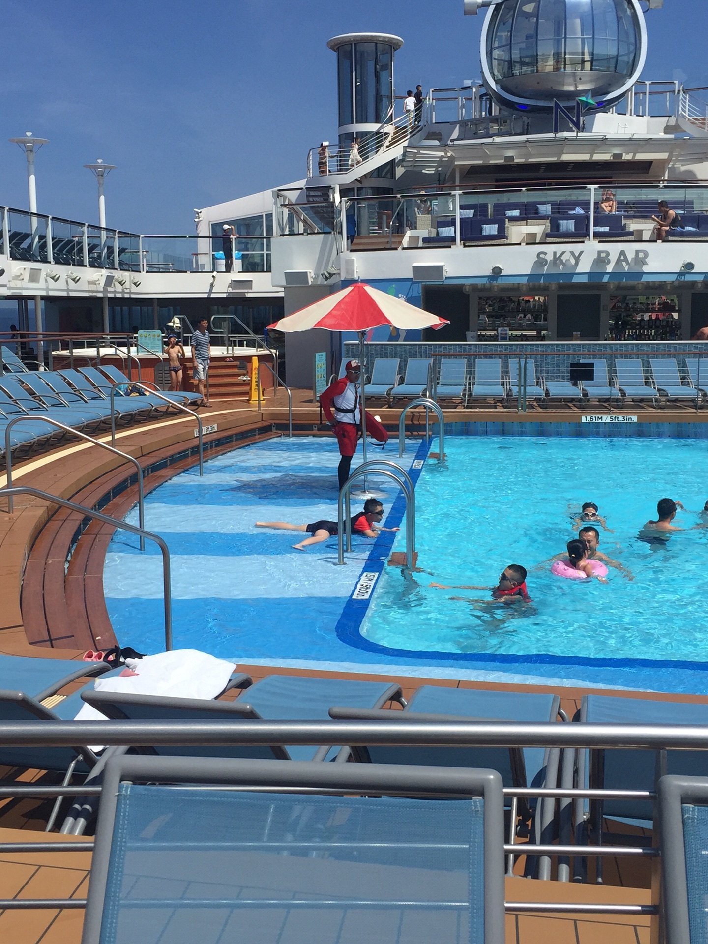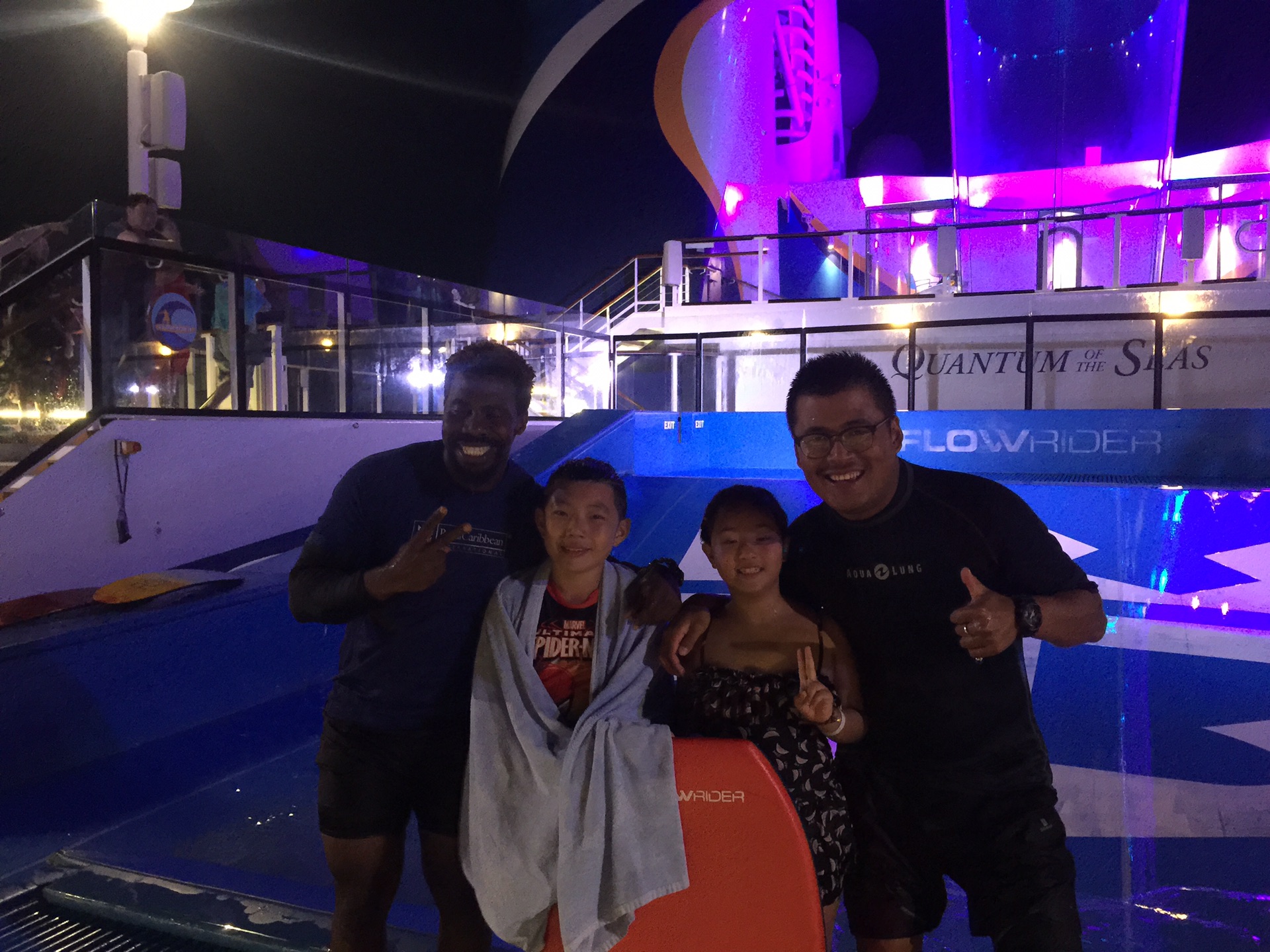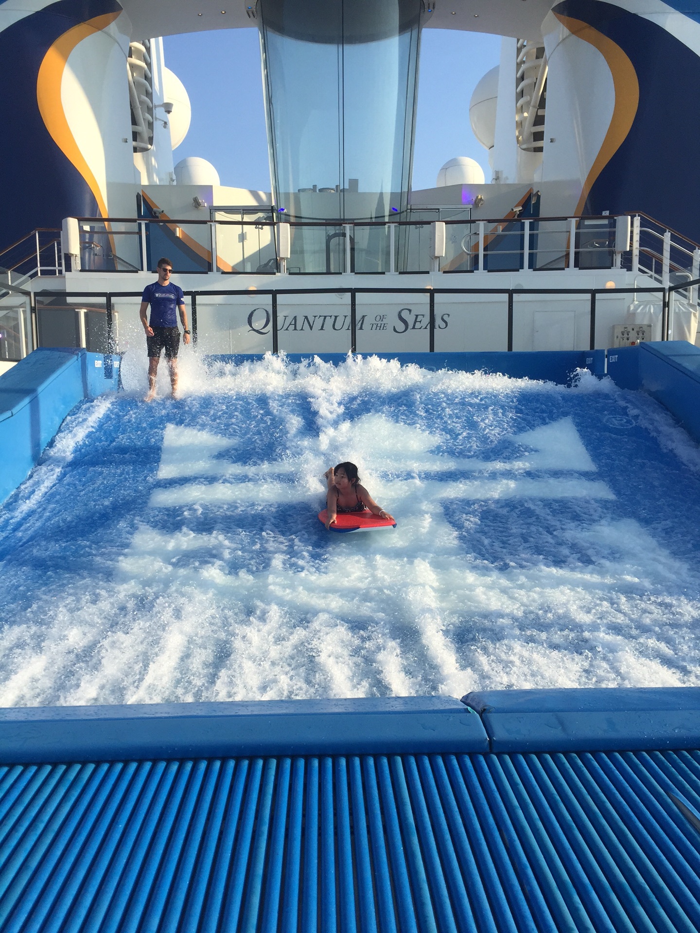 船上热门项目一定要提前下载好ROYAL的app,上船了就能马上预约,尤其是北极星(不过北极星超级没意思,性价比低),空中飞人也可以预约。不过冲浪如果要跟教练学的话,就要到现场预约时间,平时玩不收费,但是要排队。另外说一句,App倒是很好用,很多餐厅都可以在APP上订位置,不用排队这么麻烦。
