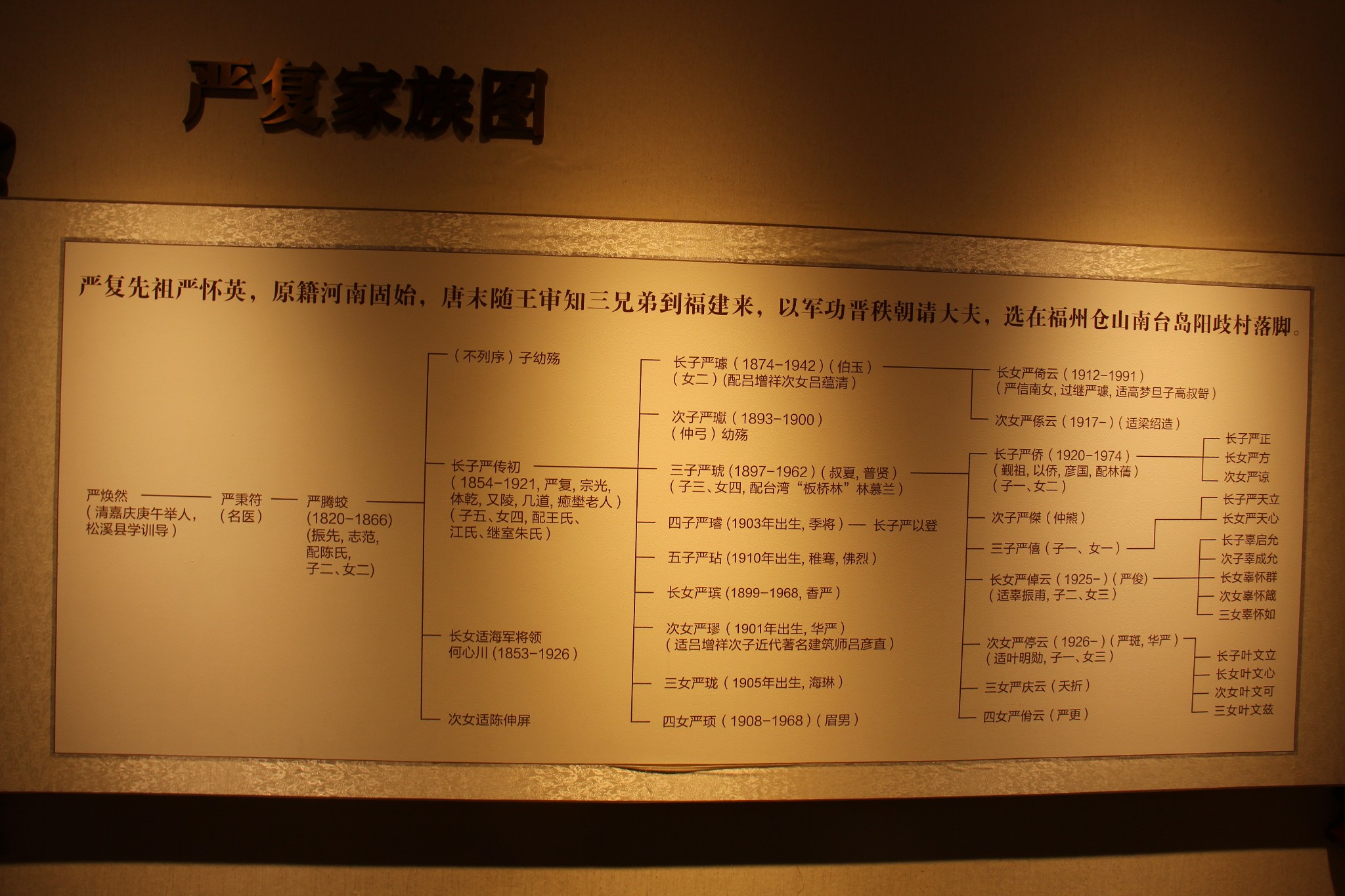 严复先祖原籍河南固始,唐末随闽国建立者王审知三兄弟到福建来,立有军功。